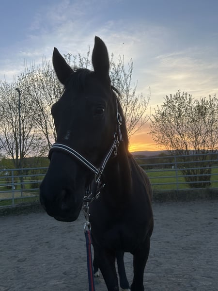 Estoy buscando un nuevo hogar para mi yegua Quintana, de 5 años. La compré como una promesa para el futuro, ya que actualmente solo tengo un pony y quería algo más joven y también un poco más grande. Sin embargo, he tenido que darme cuenta de que simplemente no somos compatibles (es mi primera yegua joven y necesita a alguien con más experiencia). Debido a su linaje, también puedo imaginarla muy bien en la cría. Ella ya sufrió una lesión, pero se ha recuperado completamente y no le afecta en nada. Se lleva muy bien con nuestro grupo de “retratados” (cuatro caballos castrados y dos yeguas). Además, está herrada y no muestra miedo a tractores, perros, etc. Quedo a disposición para cualquier consulta.