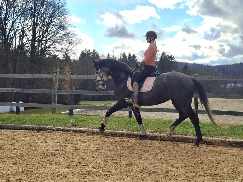 Excellent temperament combines trainability, sporting talent, and breeding value from a proven, high-performance family, making her ideal for Children and Ladies. Significantly Reduced – Winter Deal for quick decision-makers! Taurus White Moon descends from the Westphalian premium stallion Taurus (Toto Jr. x Apache), with her dam line tracing back to Hotline x Caprimond. Exceptional bloodlines & a proven family Her mother (Hotline × Caprimond) has several siblings competing successfully at S and Grand Prix levels, including full sister to Halekyn (DR/S) and St.Pr.St. Sacro Santa (ridden by Sahar Daniel Hirosh, USA). Sacro Santa’s son, Classy Sinclair, has competed successfully at CDI 3* level, and another brother of her dam is Schwarzer Mond, the first Grand Prix horse of Yara Reichert. The mare already has outstanding siblings in sport: A licensed brother, Blind Date AT, bred by Adolf Schurf of Belissimo, placed up to M** in Germany and has been competing since 2022 with a FEI Children rider. In 2025, they represented the Canadian team at the North American Youth Championships – Children – Preliminary Test 2. Gwendolyn Joinson – Blind Date AT – 71.560% (Canada). Children – Individual Test 6. Gwendolyn Joinson – Blind Date AT – 69.590% (Canada). A full sister, Foundation’s premium mare, owned by Matthieu Beckmann of “Hengststation Beckmann,” has also been successful. In 2025, another sister of Bach St.Pr.St. was also active in sport. Further offspring from her dam are still active in breeding. Trusted maternal line: Oldenburg Fekdgold line: 2nd dam: St.Pr.St. Coco Chanel (by Caprimond) – from this line come numerous S and Grand Prix horses, including: - Free Floating / Kirchhoff – Dressage S - Senta (Florestan I) – International Dressage S - Don Dulcino (Dream of Heidelberg I) – Dressage M - Leone (De Niro) – Jumping M - Donna Clara (Don Frederico) – Dressage S …and more – a proven line with highly talented sport horses! She is truly one of a kind: absolutely lovable, calm, and consistently gentle. Always well-behaved, very attentive, and eager to do everything right. Trained gently, correctly, and horse-friendly. Fully prepared for the upcoming competition season. She was deliberately trained slowly and gently to become a riding horse and is very easy to ride, sensitive to aids. After starting under saddle, she was given time to grow further, as she experienced a major growth spurt at 3.5 years, requiring a period of rest due to irritation. This shows that our horses primarily need time, which she was given. She is ready to compete in DRA tests in the upcoming season. She is used to full-day turnout and paddock, with stabling in the evening. She is herd-compatible, enjoys hacking out, loves ground work, knows the lunging ring, and transports confidently in a trailer or transporter, like a seasoned competition horse. Health: X-ray certificate from 2024 available. No allergies or eczema, vaccinated, dewormed, and recently checked by the dentist. Regularly attended by the farrier. Special features & note: Current riding videos are being produced; older videos from her break-in can be sent upon request. To avoid touristic riding, a fee of €35 will be charged for trial riding, which will be deducted from the purchase price. This mare is a very special personality and will only go to the best, most nurturing hands.