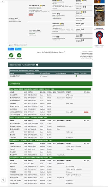 Hervorragender Charakter vereint Ausbildungsbereitschaft, Sporttalent und Zuchtwert aus einer bewährten, leistungsstarken Familie und ist ideal geeignet für Children und Damen. Stark Reduziert - Winterdeal für schnellentschlossene! Taurus White Moon ist Abstammend vom Westfälischen Prämienhengst Taurus (Toto Jr. x Apache) ihre Mutter stammt von Hotline x Caprimond Außergewöhnliche Blutlinien & bewährte Familie Ihre Mutter (Hotline × Caprimond) hat mehrere S- und Grand Prix erfolgreiche Geschwister, Vollschwester zu Halekyn (DR/S) sowie St.Pr.St. Sacro Santa (geritten von Sahar Daniel Hirosh, USA). Sacro Santas Sohn, Classy Sinclair, hat auf CDI3*-Niveau erfolgreich gestartet, ein weiterer Bruder ihrer Mutter ist das erste Grand-Prix Pferd von Yara Reichert, Schwarzer Mond. Die Stute hat bereits tolle Geschwister im Sport Ein gekörter Bruder Blind Date AT aus der Zucht von Adolf Schurf von Belissimo, platziert bis M** in Deutschland und seit 2022 bei einer FEI Children-Reiterin. 2025 vertraten sie das Canadische Team beim 2025 North American Youth Championships - Children - Preliminary Test 2. Gwendolyn Joinson - Blind Date AT - 71.560% (Canada), Children - Individual Test 6. Gwendolyn Joinson - Blind Date AT - 69.590% (Canada) Eine Schwester Verbandsprämienstute von Foundation aus dem Besitz von Matthieu Beckmann „Hengststation Beckmann“ L**platziert, 2025 wurde eine weitere Schwester von Bach St.Pr.St. Weitere Folgen ihre Mutter ist noch aktiv in der Zucht ist. Bewährter Mutterstamm: Oldenburger Fekdgoldstamm: 2. Mutter: St.Pr.St. Coco Chanel (v. Caprimond) – aus dieser Linie stammen zahlreiche S- und Grand Prix-Pferde, u. a.: Free Floating / Kirchhoff – Dressur S Senta (Florestan I) – Int. Dressur S Don Dulcino (Dream of Heidelberg I) – Dressur M Leone (De Niro) – Springen M Donna Clara (Don Frederico) – Dressur S … und weitere – eine bewährte Linie mit sportlich hochveranlagten Pferde! Eine wie keine, sie absolut liebenswert, ruhig und stets gutmütig. Immer artig, sehr aufmerksam und immer bereit, alles richtig zu machen. Schonend, korrekt und pferdegerecht ausgebildet. Vollständig vorbereitet für die kommende Turniersaison. Sie wurde bewusst langsam und schonend zum Reitpferd ausgebildet und ist sehr leicht zu reiten, fein an den Hilfen. Nach dem Anreiten durfte sie nochmals in Ruhe wachsen, da sie mit 3,5 Jahren einen großen Wachstumsschub der eine Ruhephase aufgrund einer Reizung benötigte. Was zeigt unsere Pferde brauchen vor allem Zeit, die sie bekam. Sie ist bereit, in der kommenden Saison in DRA-Prüfungen zu starten. Sie kennt ganztägig Weide/Paddock und abends die Box. Sie ist herdenverträglich, geht ins Gelände, hat Freude an der Bodenarbeit, kennt die Führanlage und fährt Hänger/Transporter wie ein routinierter Turnierprofi. Gesundheit: Röntgentüv aus 2024 liegt vor. Keinerlei Allergien oder Exeme, ist geimpft, entwurmt und kürzlich vom Zahnarzt vorgestellt. Selbstverständlich regelmäßig beim Hufschmied. Besonderheiten & Hinweis Aktuelle Videos unterm Sattel werden derzeit erstellt; ältere vom Anreiten können gerne auf Anfrage zugesendet werden. Um Reittourismus zu vermeiden, werden fürs Probereiten 35 € veranschlagt, die beim Kauf verrechnet werden. Diese Stute ist eine ganz besondere Persönlichkeit und geht ausschließlich in beste, fördernde Hände.