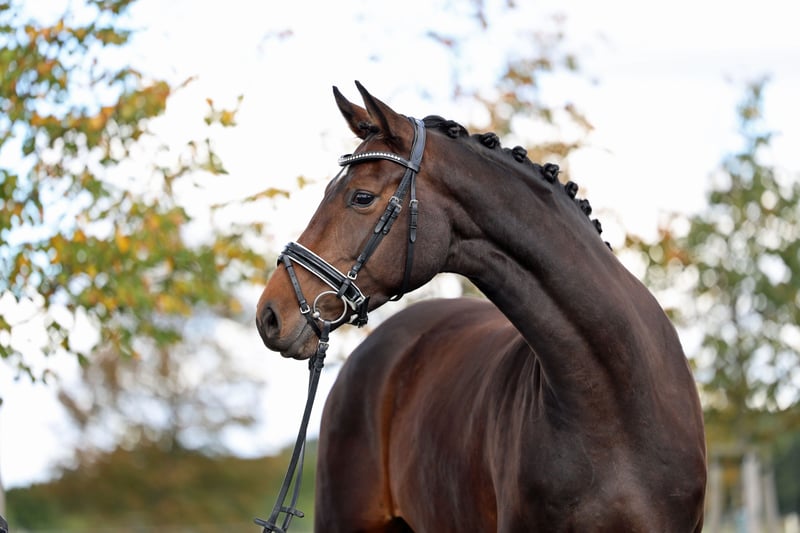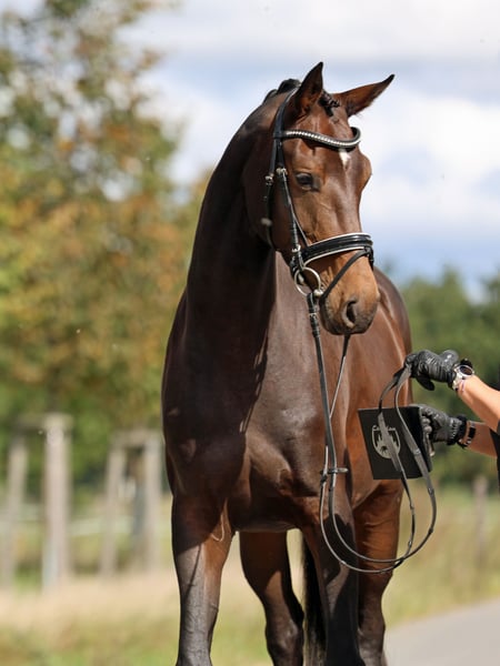 High-quality dressage prospect from the breeder Fergie is a horse with a lot of charisma, bringing everything one expects from a top dressage prospect. Her excellent basic gaits are combined with size, courage, and willingness to perform. This makes her the ideal sports partner for ambitious riders looking for a horse with which they can achieve everything. Our trainer puts it succinctly: "Fergie is a horse that I need. There is movement behind it, there is willingness to perform. The horse is engaged; she wants to work." And after we photographed Fergie, we must add that she has true model qualities - we have never had so many different, great photos with such an outstandingly cooperative horse. Fergie combines excellent performance genes: She is sired by the For Romance I son Fashion in Black NRW. He was the Westphalian champion stallion, reserve champion of his HLP, vice champion of the 4-year-old stallions at the Bundeschampionat, and already successful in S-level competitions at the age of 7. Her dam's sire is Ingrid Klimke's Grand Prix series winner Franziskus FRH, whose father and grandfather were also Grand Prix horses. On her dam's side, Fergie has four generations of premium and state premium mares. Her mother is a full sister to the S-successful Flo Renciano and has 6 other successful siblings. The second dam is, among others, a full sister to the S-horse Showstar, and the fourth dam is a full sister to two S-horses. Good X-rays available. You can find us just 30 minutes from Berlin, where we have raised Fergie from foal age in our agricultural operation on large pastures in a herd setting. If you would like to get to know Fergie and our other young horses or learn more, we look forward to your call at 03301 577 2585! *** The journey is worth it! For more young horses, see below in our other listings. ***