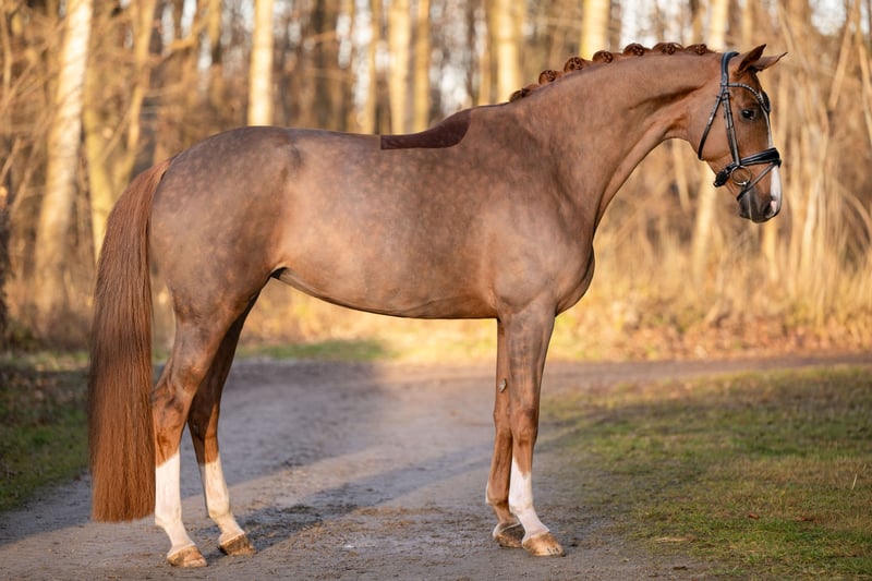 Liebe Interessenten, Für Terminvereinbarungen Probereiten senden Sie mir bitte eine WhatsApp. Für weitere Fragen bin ich tagsüber per WhatsApp erreichbar, telefonisch erreichen Sie mich am Besten zwischen 16 und 19 Uhr. Ich freue mich auf eine Kontaktaufnahme www.angelina-devittorio.de ⭐️Secret Lady⭐️ Alter: 5 Jahre (2020) Größe: ca 1,71 m Abstammung: Selectric x Hogwart Ausbildungsstand: angeritten AKU: Gute Röntgenbilder vorhanden Zum Verkauf steht eine traumhaft schöne Fuchsstute, Tochter des Top-Vererbers Selectric. Sie verfügt über drei sehr gute Grundgangarten, hatte ein Fohlen und ist nun solide angeritten. Noch wenig gefördert und ausgebildet möchte sie stets gefallen und alles richtig machen. Hier reift ein Juwel von besonderer Güte heran – ein hervorragendes Ausbildungspferd mit Perspektive für das Gehobene Dressur-Viereck. Noch voll in der Entwicklung stehend, wächst hier ein traumhaftes Nachwuchspferd mit großem Potenzial heran. Gute Röntgenbilder liegen bereits vor. Im Umgang ist sie super brav und unkompliziert, sehr verträglich und auch beim Reiten bereits ausgesprochen kopfklar. Noch sehr wenig geritten braucht sie noch entsprechende Grundausbildung (noch zu reiten wie ein 3 jähriges Pferd) daher wird sie weit unter Wert verkauft . Natürlich ist aufgrund ihres Ausbildungsstandes Erfahrung mit angerittenen Pferden Voraussetzung, dennoch absolut amateurtauglich. Sie zeigt keinerlei Unarten und bemüht sich stets, alles richtig zu machen. Ein hochveranlagtes Nachwuchspferd zu einem sehr interessanten Preis! Der Preis ist ein Festpreis und nicht verhandelbar ⚜️Tel: 0171-3438949 ⚜️a.devittorio@web.de ⚜️https://www.ehorses.de/angelinadevittorio Facebook und Instagram Angelina De Vittorio