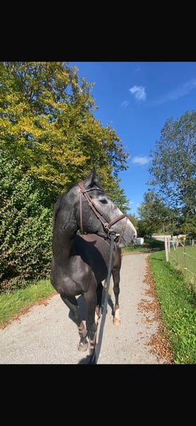 Beautiful and elegant 4-year-old mare by Vingino out of Calido x Grannus. Long-legged, well-built, easy to ride (even for young riders), and always well-behaved and calm, whether in the arena, riding school, unfamiliar surroundings, or on the trail (alone or in a group). Good with the farrier and loading, and stands quietly. A versatile horse suitable for all disciplines, equipped with lovely and comfortable movements. She has already taken her first jumps under saddle and is very well-schooled in dressage for her age. Thanks to her excellent pedigree, she is also suitable for breeding. She is unshod (very good hooves according to the farrier) and is kept in a small herd in an open stable (more subordinate) with mares and geldings, with whom she gets along well and is uncomplicated. Overall, a truly wonderful lady/young horse. Price in line with her quality. Please contact me by phone if interested: 0163608584. Additional note: She recently competed in her first three 105 cm classes, winning all of them.