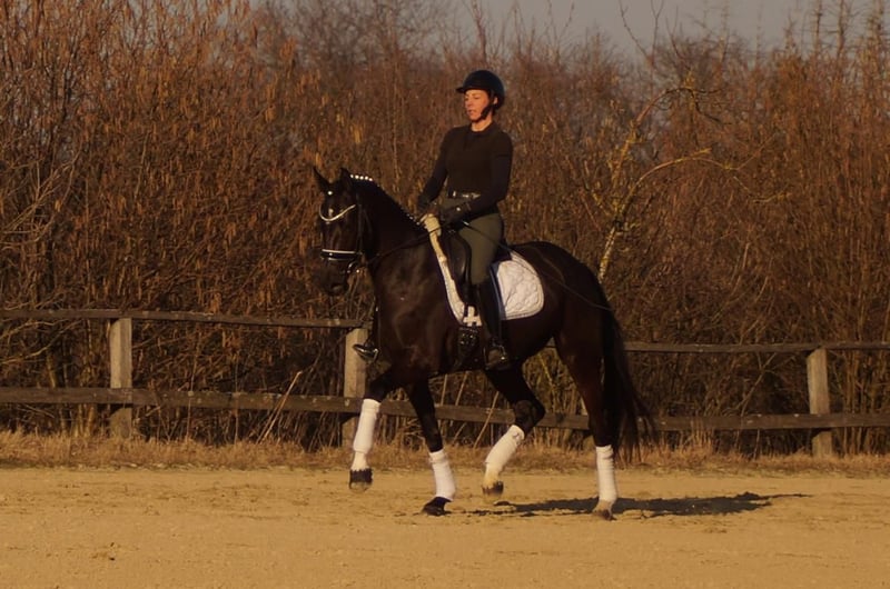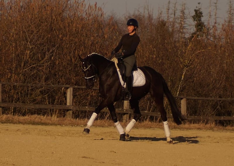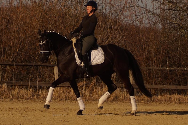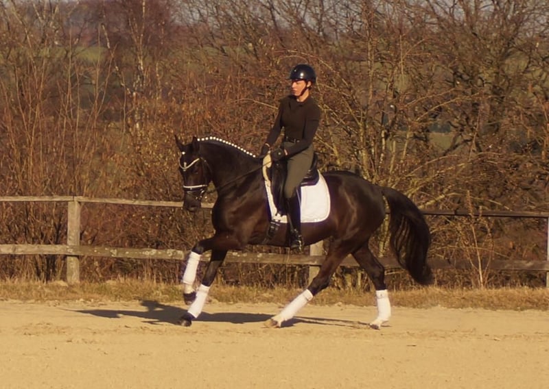 Samira ist eine extravagante Dame mit einem souveränen, liebenswerten Charakter. Sie bringt nichts aus der Fassung, versucht immer 100% zu gefallen und ist sehr leicht zu bedienen. Sie verfügt über drei großangelegte Bewegungen mit sehr viel Potential. Vor Allem der Galopp erinnert stark an ihren Vater, den Bundeschampion Secret. Über die Mutterlinie erhält sie durch das De Niro Blut die perfekte Winklung der Hinterhand mit viel Hebel und Kraftentwicklung. Ebenso führt der Mutterstamm einen guten Schuss Blut, wodurch Samira sehr leichtrittig ist. Neben der Genetik begünstigt natürlich der nahezu perfekte Körperbau die Rittigkeit und Balance. Insgesamt wäre Samira ein ideales Umsteigerpferd. Mit ihrer Leichtigkeit den Rahmen zu erweitern und zu schließen und die Gelassenheit Fehler zu verzeihen passen ideal zu einem Reiter, der gerne mit leichten Hilfen reiten möchte.