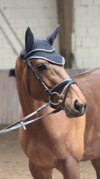 Creative is a beautiful and very charming 16.1 hh mare. She is so well-behaved that she can be ridden effortlessly by children. She is trained up to novice jumping (Class L) and has achieved placings in amateur competitions. She is absolutely safe and reliable, forgiving of mistakes and providing confidence to her rider. In dressage, she is easy to ride and very well-behaved. She is being sold by the breeder due to herd reduction. She has never been ill. Visits for a test ride are welcome. Caytens x Lacoste, born in 2020 Currently barefoot and uncomplicated.