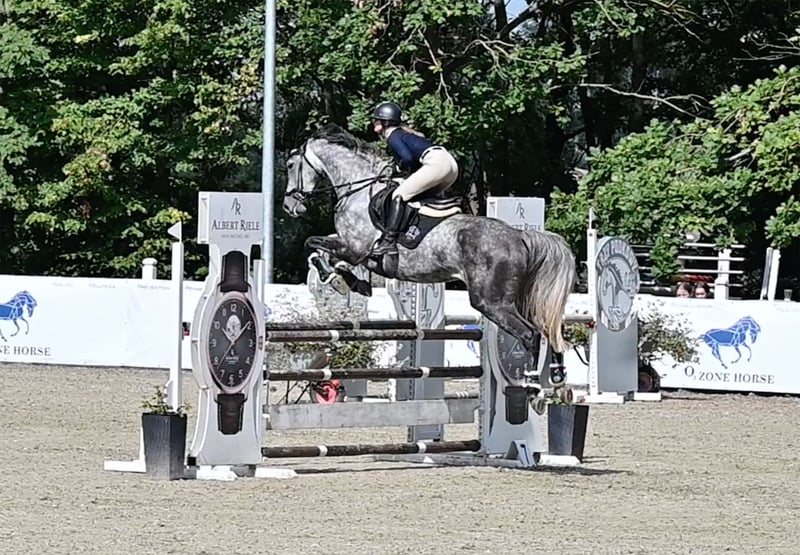 Bistakkata, geb. 2020, Stockmaß 167 cm – modernes Sportpferd, ideal für Springen und Vielseitigkeit. Die Stute ist sehr schnell und wendig, überzeugt durch eine hervorragende Sprungtechnik sowie große Genauigkeit. Sie ist mutig – verweigert niemals am Sprung. In Biskupiec startete sie bereits erfolgreich in einer Springprüfung der Klasse 120 cm. Aktuell ist sie auf einem Niveau von 130 cm vorbereitet. Ergebnisse: https://livejumping.com/ap/search/all/Bistakkata Abstammung: Vater: in Deutschland prämierter Hengst Bingo Boy (von Black Jack Classe VDL) Mutter: Speedy (Stakkato x Carismo) – erfolgreich in CSIYH1* und FEI-Prüfungen Video Vater: https://youtu.be/hgkPlY91oPU Video Mutter: https://youtu.be/ZxuWu_g31VQ Video Mutter: https://youtu.be/XFeZIiwxV8w Die Stute wurde von einer jungen Reiterin geritten und ist daher sowohl für Junioren als auch für erfahrene Reiter geeignet, die ein talentiertes, aber unkompliziertes Sportpferd suchen. Aktuelle Röntgenbilder sowie klinischer Bericht vom Dezember 2024 – ohne Befund. Vollständige Dokumentation vorhanden. Direkt vom Züchter. Mehr Informationen: www.prohipo.pl Kontakt: +48 503 055 508