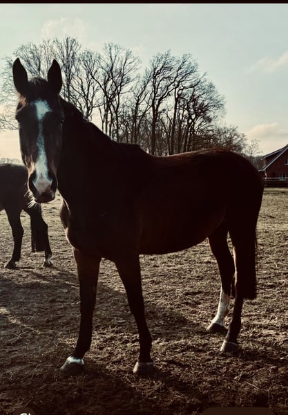 Jolie jument de reproduction, élevée pour le saut d'obstacles, à vendre. Coralie, âgée de 6 ans, est issue de Cornado I et d'une mère Adlantus Ass. Elle mesure environ 1,70 m. Elle a été légèrement débourrée, mais en raison de changements au niveau de l'os du paturon avant gauche, elle n'est malheureusement pas montable. Le père, Cornado (Cornet Obolensky x Acobat), a connu un grand succès jusqu'à 1,60 m au niveau 5 étoiles. La mère, Arielle (Adlantus Ass x Zeuss), a remporté des épreuves jusqu'à 1,40 m en saut d'obstacles.