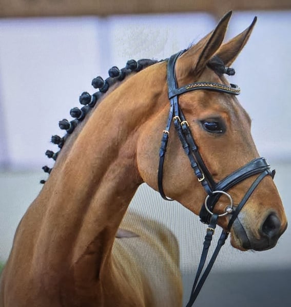 Comme il Faut x Stakkato. A 7-year-old daughter of the legendary show jumper Comme il Faut, exhibiting the same exceptional technique over fences that is also evident in this mare. She is well-behaved and eager at work, which are her key personality traits. Due to capacity limitations, she has rarely been shown in competitions so far. Currently, she is placed in the show jumping L class. While she is not the tallest mare in terms of height, her jumping ability more than makes up for it.
