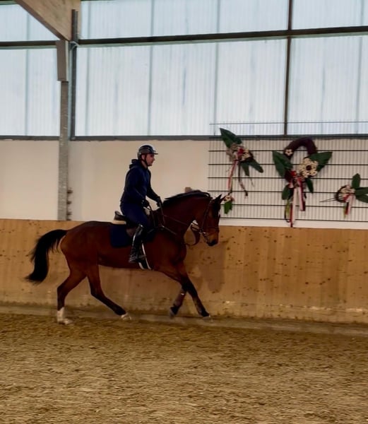 ✨ Im Auftrag: Schicke 7-jährige Stute mit toller Arbeitseinstellung Zum Verkauf steht eine 7-jährige Stute mit einem Stockmaß von ca. 1,67 m, die durch ihre angenehme Art und ihre motivierte Arbeitseinstellung überzeugt. Im täglichen Umgang zeigt sie sich absolut unkompliziert und brav. Ob Putzen, Schmied oder Verladen – sie ist stets fromm und zuverlässig. Unarten wie Buckeln, Steigen oder Treten sind ihr fremd. Unter dem Sattel präsentiert sie sich motiviert und mit einem angenehmen Go ausgestattet, ohne dabei schwierig zu sein. Sie ist keine Schlaftablette, sondern ein Pferd, das Freude an der Arbeit hat und gerne mit seinem Reiter zusammenarbeitet. Zu Hause ist sie sehr entspannt und ausgeglichen. In neuen Situationen oder auf fremden Plätzen zeigt sie sich zunächst aufmerksam und positiv gespannt, findet jedoch schnell zur Ruhe und gewöhnt sich rasch an ihre Umgebung. Die Stute ist sowohl dressurmäßig gearbeitet als auch mit Freude über kleinere Sprünge zu reiten und bietet damit eine schöne Grundlage für eine weitere Förderung in beide Richtungen. Ein tolles Pferd für Reiter, die ein motiviertes, ehrliches und vielseitiges Pferd suchen. Abstammung: Franklin x Rubino Rosso v. Rubinstein x Argentinus Preiskategorie: 10.000 – 15.000 € Bei Interesse gerne melden unter: 0171 1766048