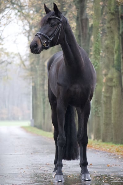 Unsere Fünkchen haben wir selbst gezogen und ist bei uns auf dem Hof groß geworden. Sie sticht besonders hervor mit ihrer Hochbeinigkeit und Eleganz. Sie ist sehr leichtfüßig und hat drei sehr gute Grundgangarten. Leider wurde sie erst Ende 5 jährig angeritten, da kein passender Reiter zum anreiten vor Ort war. Nichtsdestotrotz glauben wir, dass es ihr sogar zugute kam um weiter in ihren Körper hineinzuwachsen und sich zu stabilisieren. Sie wurde dann schonend 6 jährig aufgebaut und hat sich hier mehrfach Dressurpferde A platziert. Nun erarbeiten wir uns aktuell Seitengänge, einfache Wechsel, Außengalopp und haben spielerisch den fliegenden Wechsel schon mit ins Training übernommen. Hier zeigt sie sich sehr gelehrig und möchte immer gefallen. Aufgrund ihrer tollen Veranlagung können wir sie uns eines Tages mit dem passenden Reiter auf dem großen Viereck gut vorstellen :-) Sie hat außerdem einen guten Tüv ohne Befund. Des Weiteren hat sie Freude an Stangenarbeit, springt kleine Kreuze und ist auch beim ausreiten recht unerschrocken. Wir hoffen sehr, dass sie ein tolles Zuhause findet bei dem sie weiter gefördert und geliebt wird.