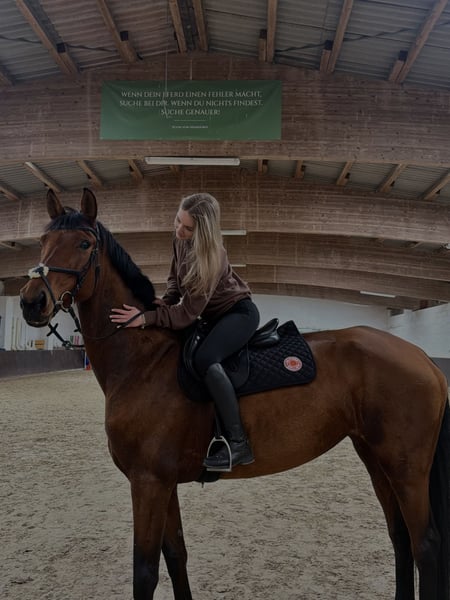 Ich biete meine 6-jährige, dressurgezogene Westfälische Stute zum Verkauf an. Sie hat ein Stockmaß von ca. 1,74 m und ist unter dem Sattel ein absoluter Goldschatz. Bisher wurde sie hauptsächlich Dressurmäßig geritten und befindet sich ca. auf A Niveau Stangenarbeit und kleine Sprünge kennt sie. Sie zeigt sich motiviert bei der Arbeit und bringt angenehmes Go mit. Aufgrund ihrer Sensibilität ist sie nicht unbedingt für Anfänger/Kinder geeignet, zeigt sich trotzdem brav, trotzdem ist sie eher für einen erfahrenen/ ambitionierten Reiter. Turniererfahrung hat sie bisher noch nicht gesammelt, bringt aber gute Voraussetzungen für die weitere Ausbildung im Dressursport mit. Allerdings gibt es Schwierigkeiten, was das Verladen angeht. Daher würde ich empfehlen, für den möglichen Transport mit einem Pferdetransporter zu uns zu kommen. Ein tolles Pferd für jemanden, der eine schicke und leistungsbereite Partnerin sucht. Sie wird nur verkauft da Reiterin und Pferd nicht zusammen passen! Probereiten ist jederzeit nach Absprache möglich. Bei Interesse oder Fragen gerne einfach melden