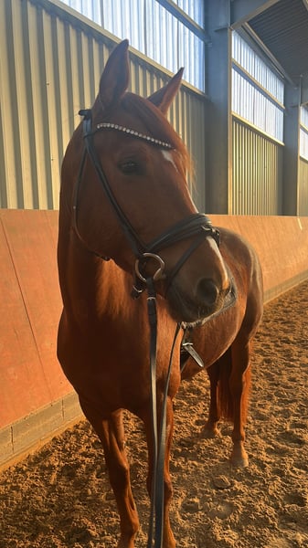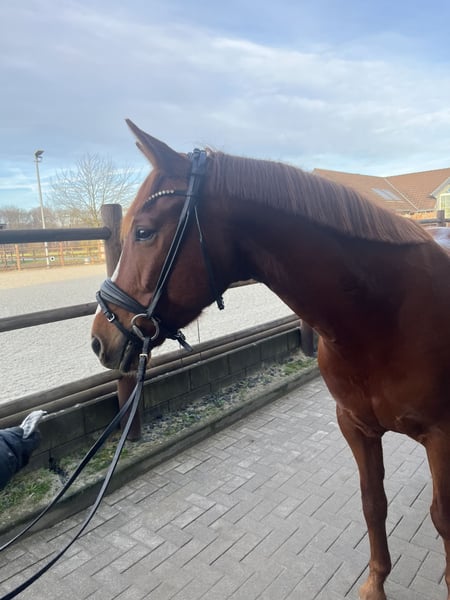 Zum Verkauf steht eine 8 Jahre alte Westfalen Stute mit einem Stockmass von ca. 1,60m. Sie ist super brav, kerngesund und befindet sich auf einem guten A/L Niveau, sie wird auf Grund von Zeitmangel gerade von einem Profi beritten. Sie geht problemlos ins Gelände, Lehrgänge, Platz etc. sind kein Problem. Auch ist sie nicht guckig, kennt Kinder und Hunde. Sie wird regelmäßig geimpft, entwurmt, vorne Beschlagen und die Zähne wurden durchgehend gemacht. Sie befindet sich im Besitz seitdem sie 4 Jahre alt ist und wurde direkt vom Züchter gekauft. Sie kennt somit nichts schlechtes und ist seit dem Anreiten durchgehend ein Mal die Woche zusätzlich in Profiberitt gewesen. Gesucht wird ein langfristiges zu Hause mit ambitionierten Reitern und einer artgerechten Haltung. Sie genießt es viel raus zu kommen und steht brav in der Herde.
