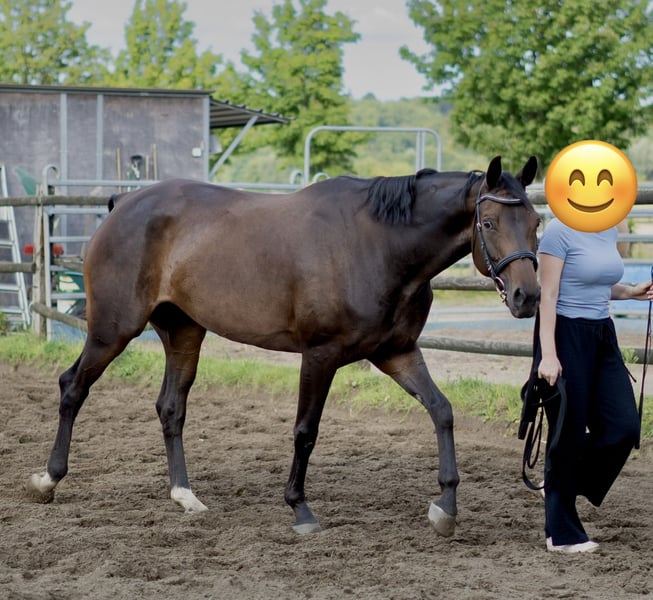 With a heavy heart, I am selling my 7-year-old Westphalian mare. In 2022, she completed the mare licensing with a gold medal and is registered in the Stutbuch I. Due to her excellent pedigree, she is particularly interesting for breeding and has already produced foals. In daily handling, she is gentle and uncomplicated, shoe- and loading-safe, and familiar with normal stable routines. She is currently barefoot. She is accustomed to herd life in both mixed and separated groups. She has never shown lameness and has been regularly treated osteopathically. Currently, a trial ride is not possible as the mare is not in training at the moment. Please feel free to contact me if you're interested.