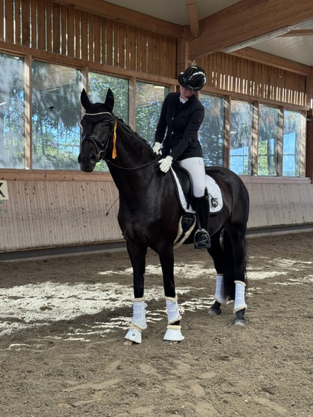 Zum Verkauf steht meine wunderschöne Dressurstute „Fini“ Sie verfügt über drei hervorragende Grundgangarten. Fini ist bereits am Turnier Dressurpferde L siegreich und Dressurpferde M platziert. Bei ihrem Charakter gibt es nichts zu bemängeln sie ist sehr Menschen bezogen und liebevoll und will für ihren Partner immer alles richtig machen. Sie lässt sich brav verladen ist beim Hufschmied brav und auch sonst keinerlei Unarten. Zur Fini könnte ein Sattel und Gebiss dazu erworben werden. Auch anderweitiges Zubehör nach Absprache. Falls Sie Ihr Interesse geweckt hat gerne über ehorses oder WhatsApp melden 0151/42840607