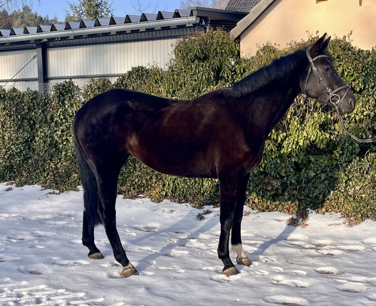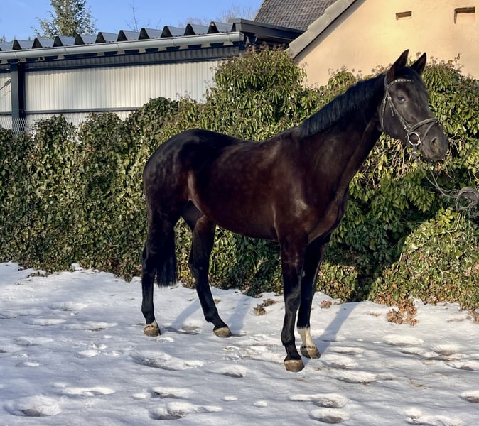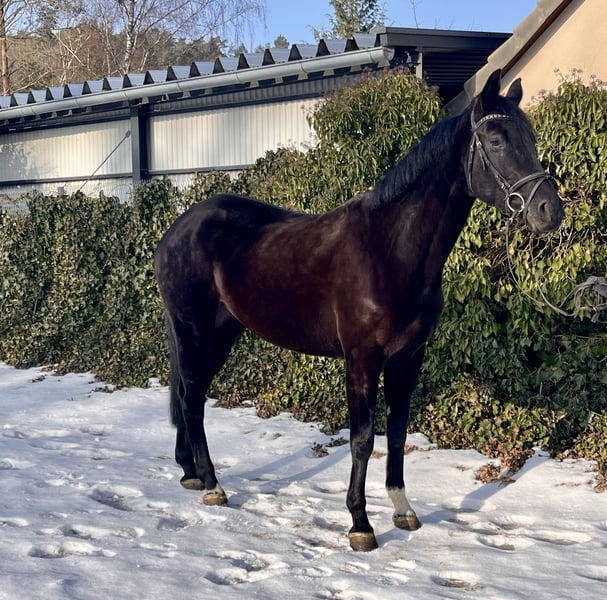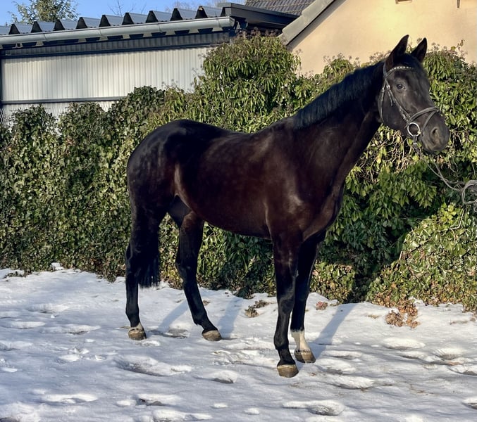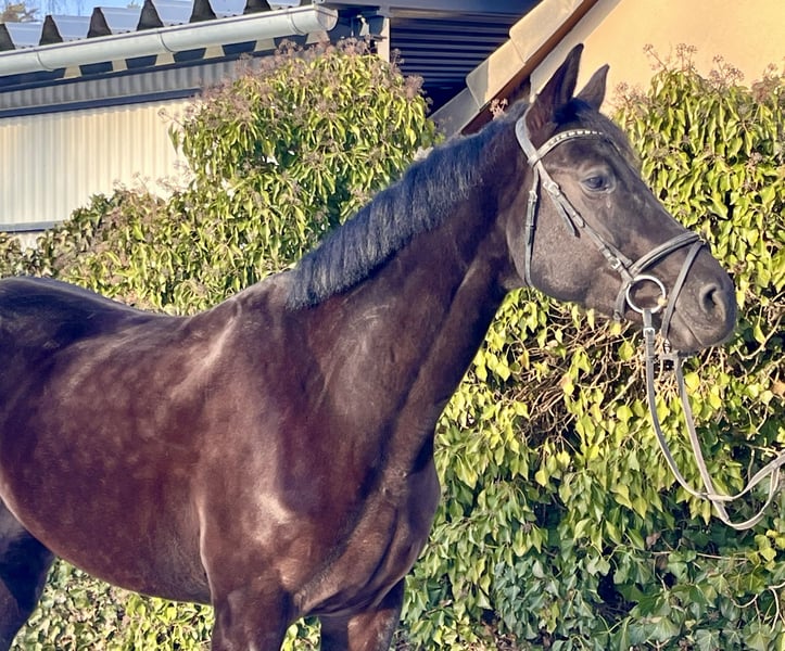 Galina - Elegant mare with potential! Galina is a very stylish black mare, born in 2018, approximately 16.1 hh. Not only is she very attractive, but she also has an excellent temperament. She has been ridden mainly for leisure and has had one foal; she is now back in work. She responds well to lunging, is impeccable in handling, and gets along well in a herd. Galina needs a gentle yet assertive rider. Once you win her heart, she becomes a wonderful partner. She is barefoot and dewormed. She is familiar with lunging, ground work, and training in the indoor arena and on the outdoor riding surface. Due to her foal, she is naturally a bit "green" in her training and now needs someone to further develop her potential. Galina has great potential, and there is much to achieve with her! Sire: Gustav v. Gambrinus Dam: v. Checkland Price: €5,950. She is located near Sonnefeld, 96242. Transportation can be arranged at the buyer's expense. Gloria is being sold due to reduction of stock.
