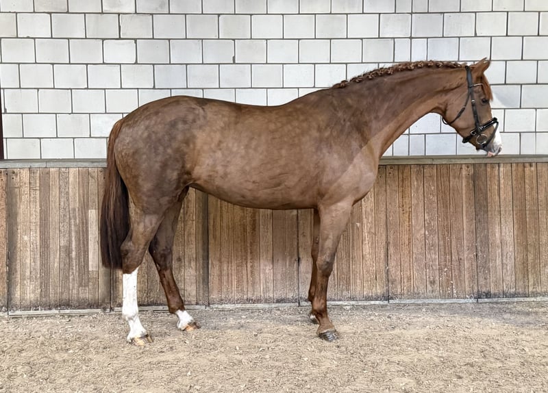 Unkomplizierte Dressurstute (2018) – viel Substanz und angenehmes Wesen Schöne, korrekt gebaute Stute aus dem Jahr 2018, mit einer Stockmaß von ca. 1,70 m und viel Substanz. Abstammung: Vater: Zoom (Zack x Don Schufro) Mutter: Romanov Blue Hors x Weltmeyer II Diese Stute zeichnet sich durch ihr sehr gelassenes und unkompliziertes Wesen aus. Sie ist weder sensibel noch schreckhaft, was sie im Umgang und unter dem Sattel angenehm macht. Sie hat bereits mehrere Fohlen bekommen und wird derzeit im Dressurtraining gearbeitet. Dank ihrer angenehmen Einstellung und interessanten Blutführung ist sie sowohl für den Sport als auch für die Zucht geeignet. Merkmale: • Stute | 2018 • ca. 1,70 m • viel Substanz • ehrliches und zuverlässiges Wesen • nicht schreckhaft oder sensibel • hat Fohlen bekommen • aktuell im Dressurtraining 📍 Weitere Informationen, Fotos und Videos auf Anfrage. Oud Gastel, NL
