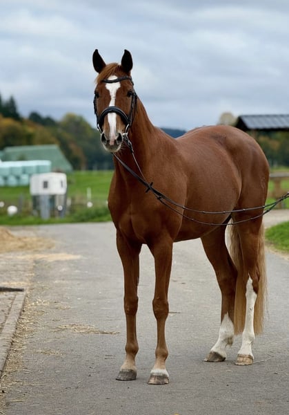 Diese bildschöne 9-jährige Westfalen-Stute vereint elegantes Exterieur, hervorragende Abstammung und sportliches Potenzial. Sie ist dressurmäßig bis Klasse L ausgebildet, hat Turniererfahrung und ist ideal für ambitionierte Reiter oder Zuchtinteressierte. Ausbildung & Eignung: • Dressur bis Klasse L, mit solider Turniererfahrung • Perfekt für ambitionierte Freizeit- oder Turnierreiter • Benötigt regelmäßiges, gezieltes Training, um ihr volles Potential zu entfalten • Vielversprechend für sportliche Weiterentwicklung in Dressur oder Freizeit Abstammung & Zucht: • Vater: Sir Heinrich (Old) • Muttervater: Belissimo M • Sehr gutes Papier – ideal für Zuchtinteressierte • Hat bereits ein Fohlen gehabt und war eine sehr gute Mutter Charakter & aktuelle Haltung: • Kein Anfängerpferd – benötigt erfahrenen Reiter • Artgerechte Haltung, täglicher Weidegang (im Winter Paddock) • Sozialisiert, gesund und fit • kennt Offenstall + Boxenhaltung - benötigt täglich Auslauf (keine reine Boxenhaltung) • wird derzeit als reines Freizeitpferd gehalten + nicht auf Turnier vorgestellt Gesundheit, Pflege & Allgemeines: • Regelmäßig geimpft und entwurmt • Zähne gepflegt, regelmäßiger Schmiedbesuch • Rundum vital • Stockmaß: 163 cm • Rasse: Westfälisches Warmblut • Farbe: Fuchs • Schmiede- und Verladefromm Abgabe: Sie wird aufgrund von fehlender Zeit und wegen Bestandsverkleinerung abgegeben. Kontakt: Für weitere Infos, Videos oder detaillierte Abstammung melden Sie sich gerne. Nur ernsthafte Anfragen.
