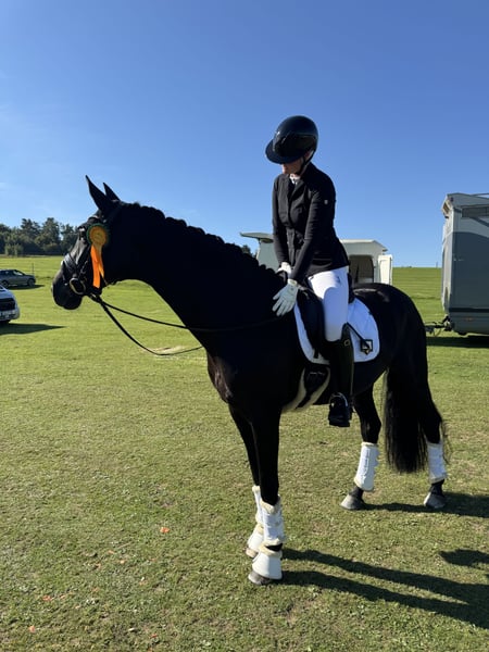 Bildhübsche Stute Sucht liebevollen Besitzer Fini ist 9 Jahre alt, seid November 2024 in unseren Besitz. Sie ist sehr sensibel, im Umgang super lieb und brav. Fini braucht einen erfahrenen Reiter der Gedult, Gefühl und Nervenstärke mit bringt. Sie ist Dressurpferde L siegreich und Dressurpferde M platziert. Stockmaß 1,66 m. Sie ist jedoch kein Gewichtsträger, wegen Größe und Statur max 70 kg. Sie ist absolut Turniertauglich weder schreckhaft noch guckig. Anhänger fahren kein problem Sie steht einfach ruhig. Sie ist mein Traumpferd habe Sie für meine Tochter gekauft, aber leider passen die 2 reiterlich nicht zusammen. September 2025 sind wir 1. Tunier mit Fini gegangen 1 Platz. Sie wird nur in beste Hände übergeben. Hatte mir überlegt Sie decken zu lassen, weil Sie einen absoluten Traum Charakter und klaren Kopf hat, trotzdem ändert sich nichts an der Situation. Bei Interesse melden für weitere Informationen. Tel: 0160/7878188