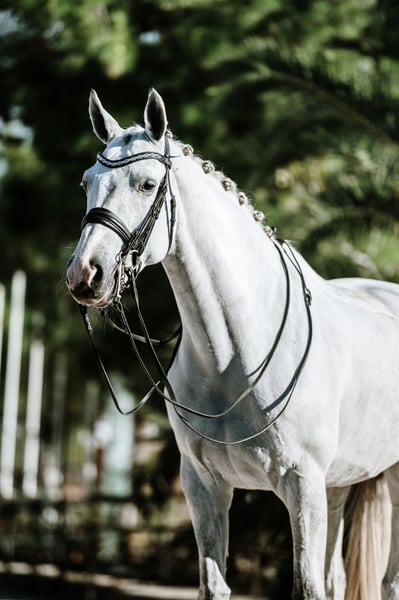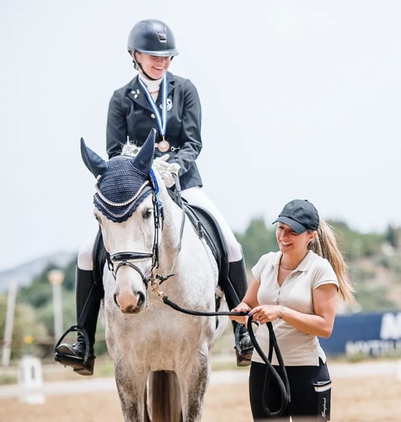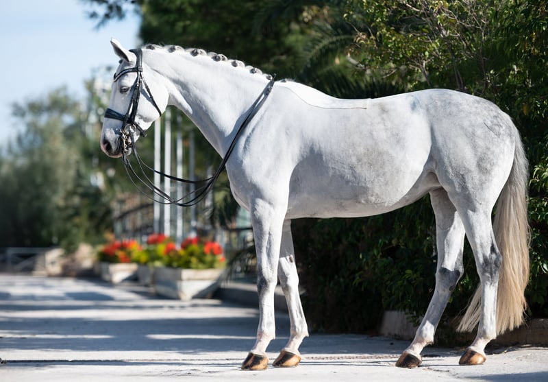 Skyline is a very sweet and eye-catching mare that has a lot of show experience with her owner in basic level classes in Greece receinin 75% from international judges. She is always willing to work and has a nice behavior. She is brave and easy enough for any rider. As of her training she can do everything from Juniors level(z2 in the Netherlands) easy,with the flying changes to be still in training. Pirouettes are also started in canter. It's the perfect horse for a kid to grow up the levels with her or a professional to create a future psg horse to compete. Moreover she comes from a top line that makes her also an interesting one to breed in the future.