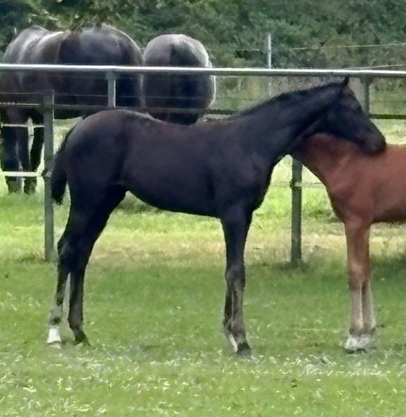 Aufgrund von Bestandsverkleinerung ist dieses bildhübsche Stutfohlen günstig abzugeben. Geboren am 13.03.25,nun also bereit zum absetzen. Elastic x FollowMe x SanRemo X Ehrentusch Dunkelbraun,drei hervorragende GGA,ein stabiles,korrektes Fundament und ein top Charakter zeichnen diese junge Stute aus. Mutter und Geschwister erfolgreich im Sport gelaufen bzw. unterwegs,alle bestechen durch Rittigkeit,Nervenstärke und braven Umgang. Wer also ein quälitätsvolles Nachwuchspferd mit top Charakter und Rittigkeit sucht,liegt mit dieser Stute genau richtig. Endmaß wird bei ca 173cm sein. Im Herdenverband mit ganztägigem Weidegang aufgewachsen. War regelmäßig beim Schmied und ist entwurmt. Standort:48477