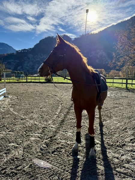 Hübscher junger Fuchs sucht neuen Wirkungskreis! ✨ Dieser 5-jährige, Wallach überzeugt mit seinem freundlichen Wesen und braven Charakter. Er wird als Freizeitpferd verkauft. Kennt Anhänger, Hufschmied, Bodenarbeit, Ausreiten usw… 🔍 Abstammung: Caruso Z x Carracci x Lagaat 📞 Mehr Infos: 0798179873 https://www.rossel-sportpferde.ch/verkaufspferde/