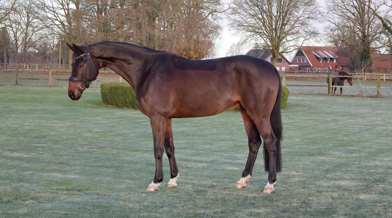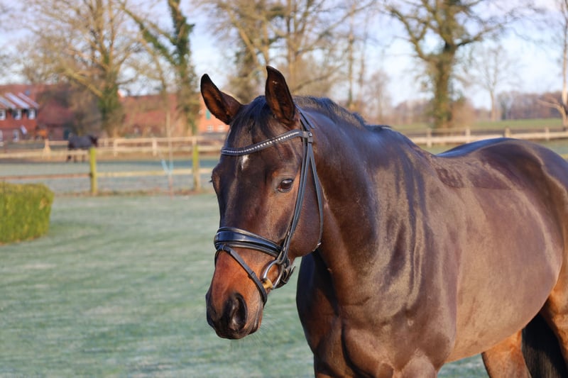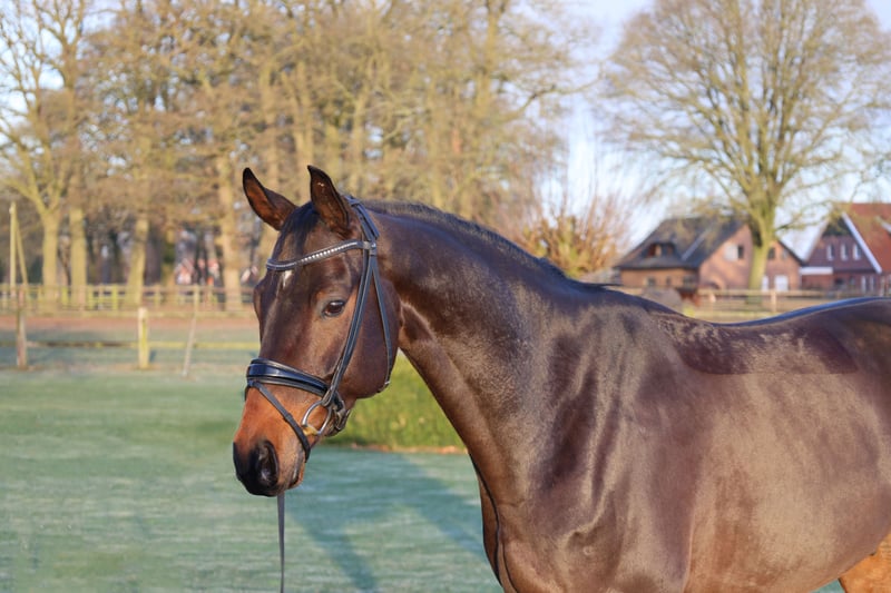 Marrakesch ist ein moderner, charmant auftretender Wallach des Jahrgangs 2019 mit einem aktuellen Stockmaß von 1,69 m. Er stammt aus der Zucht des Pferdezuchtverbandes Baden-Württemberg und überzeugt durch seine erstklassige Abstammung Maracanà x San Amour I, die für Rittigkeit, Leistungsbereitschaft und Qualität steht. Ausgebildet bis Dressur L** zeigt sich Marrakesch stets motiviert und lernwillig unter dem Reiter. Er vermittelt einen sehr angenehmen Reitkomfort, wodurch er sowohl für ambitionierte Amateure als auch für erfahrene Reiter interessant ist. Seine Arbeitsfreude und sein positives Go machen jede Trainingseinheit zu einem Vergnügen. Er hat in nur wenigen Monaten den Außengalopp, Einfache Wechsel und Trab Traversalen auf dem Vechtehof erlernt. Aktuell erarbeiten wir spielerisch die Galopp Traversalen als vorbereitende Arbeit für das Erlernen des fliegenden Galopp-Wechsels. Im Umgang präsentiert sich Marrakesch unkompliziert und ausgeglichen. Er genießt die tägliche Zeit auf der Weide gemeinsam mit seinem Freund und zeigt sich auch im Stall absolut brav und sozial. Ein talentiertes Dressurpferd mit tollem Charakter, das Freude macht und Potenzial für die weitere sportliche Entwicklung mitbringt.