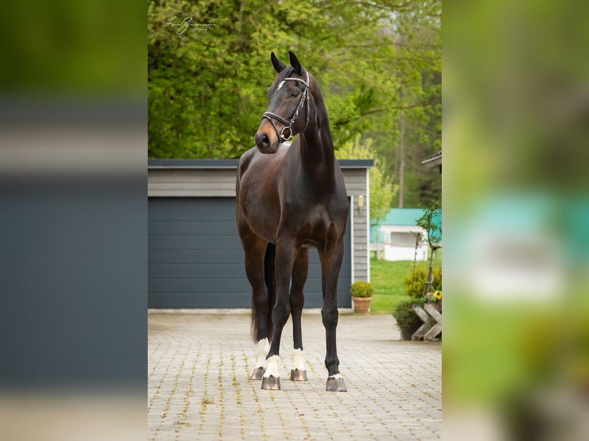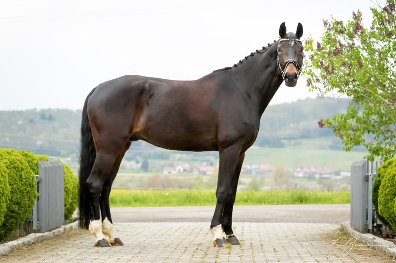 Wunderschöner grossrahmiger dunkelbrauner Wallach von For Romance aus einer Riccione-Rubinstein Mutter. Geb. 2018 Größe 1.79 m L-Dressur fertig Geländesicher Auch am Springen hat er seine Freude und kann gefördert werden. Direkt vom Züchter.