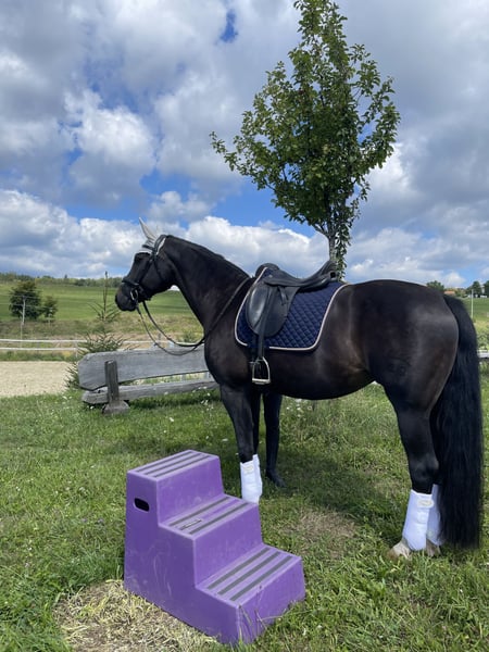 Baden-Württemberger Fidertanz-Stute – dressurbetont, motiviert, geländesicher – Bestplatz gesucht Zum Verkauf steht eine 14-jährige Baden-Württemberger Stute, geboren am 20.05.2012, mit einem Stockmaß von 162 cm. Abstammung: Vater Fidertanz, Mutter Rutaria. Die Stute ist dressurmäßig solide ausgebildet, sehr brav im täglichen Umgang und zuverlässig unter dem Sattel. Sie bringt viel Go und Arbeitsfreude mit und möchte eher gebremst als getrieben werden. Sie eignet sich für gut reitende Freizeitreiter oder ambitionierte Reiter mit Ausbildungsinteresse. Ausbildungsstand & Eigenschaften: • dressurmäßig gearbeitet und weiter förderbar • springmäßig veranlagt und ausbaufähig • eine Turniervorstellung (4. Platz, nicht platziert) • geht alleine sowie in der Gruppe sicher ins Gelände • schmiede- und verladefromm • gesund, keine bekannten Einschränkungen • vorne aktuell beschlagen, läuft auch problemlos barhuf • motiviert, fleißig und klar im Kopf • brav im täglichen Handling Sie kennt Halle, Platz und Gelände und zeigt sich stets leistungsbereit und zuverlässig. Zubehör: Ein Prestige Dressursattel und weiteres Zubehör, kann mit übernommen werden. Kein Notverkauf — Abgabe erfolgt ausschließlich bei passendem Bestplatz mit regelmäßiger Förderung und zuverlässiger Betreuung. Sie ist ein absolutes Herzenspferd. Eine AKU kann gerne auf Käuferkosten durchgeführt werden. Standort: Baden-Württemberg, Raum Waldshut Preis: 17.500 € VB Bei ernsthaftem Interesse bitte mit kurzer Reitervorstellung melden.