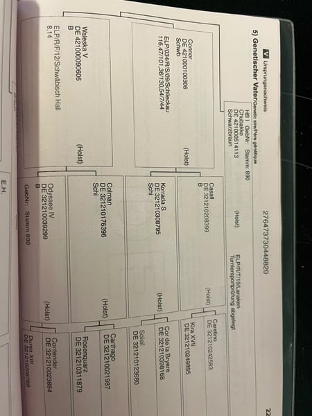 Nombre: Chubacca Edad: 6 años Altura: aproximadamente 1,65 m Heredera de Chaccco Blue Chubacca se ofrece preferentemente como yegua de cría o exclusivamente a jinetes de doma o paseo muy experimentados y delicados en su manejo. Tras una reflexión cuidadosa, he llegado a la conclusión de que sus mayores cualidades probablemente se encuentren en la reproducción más que en la doma o en el salto. Carácter y manejo Chubacca es muy obediente en su trato diario, está habituada al ajetreo del establo, ya que vive en una pequeña escuela de ponis. Está acostumbrada a la música. Le encanta la atención, es muy cariñosa y absolutamente no es malintencionada. No obstante, posee un instinto de huida muy marcado, es poco valiente, nerviosa y se asusta con facilidad, lo que la hace rápidamente irritable. Por ello, necesita un jinete seguro y tranquilo que le transmita confianza de manera constante. En ningún momento es maliciosa. Doma y entrenamiento Por una lesión, aún se encuentra en el nivel de un potro. Requiere tiempo, repeticiones y paciencia, es fácilmente distraíble y le toma un poco más de tiempo en calentarse. No responde bien a la presión o a la impaciencia. Se puede montar en paseos en compañía o como caballo de mano, siempre que se conduzca con previsión y se tengan en cuenta posibles situaciones que puedan asustarla. Aunque también hemos salido solas, ella se muestra muy tensa en esas ocasiones. Saltos ❗ Absolutamente no es un caballo de salto ❗ Tiene un problema evidente con las barras de los obstáculos, incluso en tierra. Sospecho que puede tener un trauma por las barras, posiblemente por una experiencia en el establo de venta o anterior. Al contacto con las barras, reacciona de forma nerviosa, hasta pánica, o se niega a saltar. Por ello, no se vende como caballo de salto en ningún caso. Salud En enero de 2025, Chubacca fue sometida a una operación con chip en la articulación del tobillo, que lamentablemente requirió una segunda intervención (lavado de la articulación). Las operaciones han cicatrizado completamente, aunque la articulación permanecerá permanentemente más gruesa. Según la clínica, esto es únicamente un problema estético, sin ninguna limitación funcional. Se encuentra en revisión regular en: - Podólogo equino - Osteópata - Herrero - Veterinario dentista Transporte en remolque Solo viaja acompañada de otro caballo. En la compra, se transportaba sin problema sola. En el primer intento posterior, mostró inseguridad y saltó hacia atrás bajo la barra. Con entrenamiento intensivo, sube bien con un caballo de acompañamiento, permanece tranquila, pero desea bajarse rápidamente. Condiciones de alojamiento Líder en la manada (probablemente también por su tamaño) Verano: pastoreo 24/7 Invierno: box en paddock abierto por la noche en grupo, durante el día en pasto de invierno con heno en cantidad ilimitada Resumen Chubacca es una yegua sensible, honesta, que probablemente no recibió el tiempo necesario durante su doma y sufrió un trauma por las barras. Necesita una persona con mucha experiencia, calma y paciencia, o un lugar donde pueda centrarse completamente en su papel como yegua de cría. ❗ No es un caballo para principiantes. No es un caballo de salto. No es una venta de emergencia. Prioridad a la calidad del lugar. Más información y vídeos a petición.