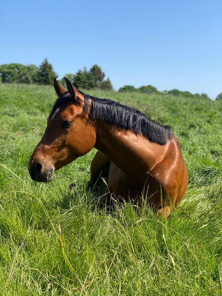 Name: Chubacca Age: 6 years Height: approximately 16.1 hh Chaccco Blue offspring Chubacca is primarily offered as a broodmare or exclusively to very experienced, sensitive leisure riders. After careful consideration, I have concluded that her strengths likely lie more in breeding than in being a riding horse. **Character & Handling** Chubacca is very well-behaved in daily handling, accustomed to stable activity as she lives in a small pony riding school. She is used to music. She loves attention, is very affectionate, and absolutely not malicious. However, she has a very pronounced flight instinct, is somewhat timid, easily spooked, and quick to become agitated. Therefore, she needs a confident, calm rider who can consistently provide her with a sense of security. She is never malicious. **Riding & Training** Due to an injury, she is still at a young horse level. She requires time, repetition, and patience, is easily distracted, and takes longer to warm up. She does not respond well to pressure or impatience. Riding out is possible in company or as a lead horse, provided one rides proactively and is attentive to potentially frightening situations. We have also ridden alone, but she was quite tense. **Jumping** ❗ Not a jumping horse ❗ She has a clear problem with poles – even on the ground. I suspect a trauma from poles at her previous sales stable or earlier. When in contact with poles, she reacts with agitation to panic or refusal. Therefore, she is explicitly not sold as a jumper. **Health** In January 2025, Chubacca underwent a chip operation on her hock, which unfortunately required a second procedure (joint lavage). The surgeries are fully healed, but the joint will remain permanently slightly enlarged. According to the clinic, this is purely a cosmetic issue with no functional impairment. She is regularly seen by: - Equine podiatrist - Osteopath - Blacksmith - Veterinarian **Trailer Loading** She only travels with another horse present. At purchase, she traveled without issues. Later, she showed uncertainty during loading and backed out under the ramp. After intensive training, she loads well with a companion, stands calmly, but prefers to unload quickly. **Housing** High-ranking in the herd (probably also size-related). Summer: 24/7 turnout. Winter: nights in an open stable box in a group, daytime winter pasture with ad lib haylage. **Summary** Chubacca is a sensitive, honest mare who probably did not receive enough time during training and has experienced pole trauma. She needs an experienced person with calmness and patience – or a place where she can fully focus on her role as a broodmare. ❗ Not suitable for beginners. Not a beginner or sport horse. Not a distressed sale. Price is secondary to her well-being. Further information and videos available upon request.