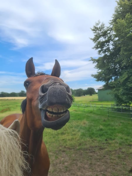.Chubacca, 6 Jahre, ca. 1,65 m, wird bevorzugt als Zuchtstute oder an erfahrene Freizeitreiter abgegeben. Sie ist im Umgang lieb, verschmust und artig, kennt Trubel aus einer kleinen Ponyreitschule, ist jedoch schreckhaft und braucht einen ruhigen, souveränen Reiter, der ihr Sicherheit gibt. Kein Anfängerpferd. Ausbildungsstand eines Jungpferdes, benötigt Zeit, Geduld und regelmäßige Arbeit, da sie schnell abgelenkt ist. Ausreiten in Begleitung oder als Handpferd geht. Wurde als Springpferd gekauft, mag aber keine Stangen. Gesundheit: Chip-OP im Sprunggelenk (01/2025), Nachspülung erfolgt, alles verheilt. Allerdings bleibt das Gelenk dauerhaft etwas dicker (nur optischer Mangel). Regelmäßig betreut durch Huforthopäden, Osteopathin und Schmied. Haltung: Sommer 24/7 Koppel, Winter Offenstall + Heulage ad libitum. Hier eher ranghoch, steht aber auch fast nur mit Ponys zusammen. Abgabe nur in erfahrene Hände oder als Zuchtstute. Standort: 24223 Schwentinental (Kreis Plön)