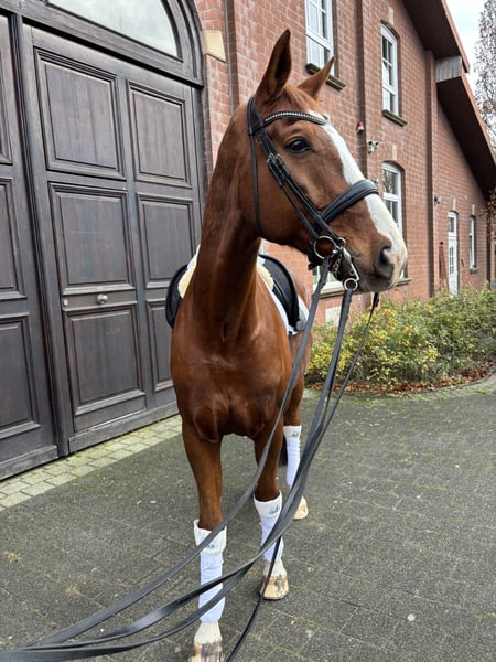 Zum Verkauf steht unser 13 Jähriger Fuchswallach. Don Glorio ist bis Klasse S** platziert, er ist stets arbeitsbereit und absolut lektionssicher. Charakterlich ist er absolut unerschrocken und gibt für seinen Sportpartner alles. Don Glorio hat im Jahr 2024, durch einen Weideunfall sein linkes Auge verloren, doch auch das hinderte ihn nicht weitere Erfolge auf Turnieren zu sammeln. (Weiterhin erfolgreich nach Verlust des Auges) Wir würden uns wünschen, dass Don Glorio ein Lehrmeister für eine junge/ einen jungen ambitionierten Reiter/in sein kann und den Weg in die schwere Klasse erfolgreich ebnet.Es ist uns aber auch wichtig das Don Glorio weiterhin viel Liebe erhält und die Aufmerksamkeit bekommt die er verdient. Für Fragen stehen wir jederzeit zur Verfügung.