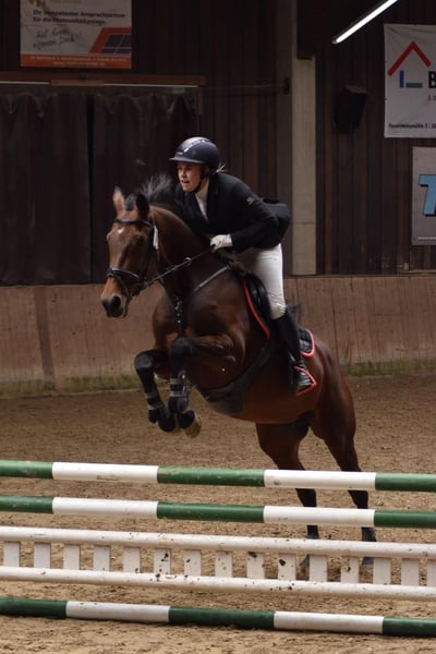 Zum Verkauf steht eine talentierte Württemberger Stute, geboren im Jahr 2012. Mit ihrem eleganten, braunen Fell und einem Stockmaß von 165 cm ist sie nicht nur ein echter Blickfang, sondern auch eine zuverlässige Partnerin im Sport. Diese Stute bringt eine große Leidenschaft für das Springen mit und zeigt dabei viel Potenzial. Sie ist gut ausgebildet und hat bereits an verschiedenen Turnieren teilgenommen, wo sie ihre Fähigkeiten eindrucksvoll unter Beweis gestellt hat. Sie wurde in jungen Jahren schonend ausgebildet und wird seit 2 Jahren mehr gearbeitet, sie ist somit unverbraucht, gesund und bereit, nun gezielt weiter gefördert zu werden. Die Stute ist im Umgang brav, gut erzogen und eignet sich sowohl für erfahrene Reiter als auch für ambitionierte Reiter, die ihre Fähigkeiten weiterentwickeln möchten. Bei Interesse oder weiteren Fragen stehe ich Ihnen gerne zur Verfügung. Lassen Sie sich diese Gelegenheit nicht entgehen, eine außergewöhnliche Stute in Ihre Familie aufzunehmen!