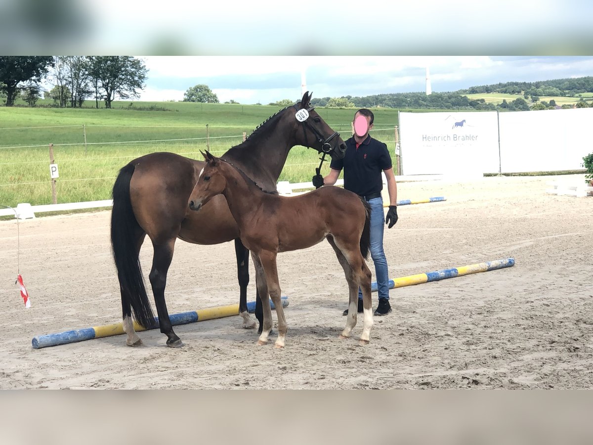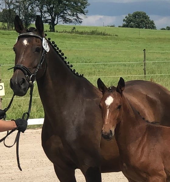 Wir möchten die Pferdezucht aufgeben und bieten daher unsere "Belle Amie" an. Sie ist eine erfahrene Zuchtstute und ist aktuell tragend für Mitte Juni vom Hengst Söl'rings Cuvee, einem kleinen deutschen Reitpferd. Eine Vollschwester des zu erwartenden Fohlens aus 2025 kann vor Ort besichtigt werden. Sie gefiel uns so gut, dass wir die Anpaarung wiederholt haben. Außerdem steht hier noch eine 5-jährige Tochter von Casallco. Belle Amie ist eine anglo-arabische Halbblutstute und eignet sich daher hervorragend, den Vollblutanteil zu erhöhen. Sie ist mit ihrem Outcross-Pedigree mit nahezu keinem der aktuellen Hengste verwandt, mütterlich geht sie auf das alte Blut des Wettstreit und Ramiro zurück. Ihre bisherigen Fohlen ähnelten alle dem jeweiligen Vater, sie gibt sicher einen edlen Kopf mit schönem Gesicht weiter. Außerdem waren alle Fohlen bisher von Geburt an sehr agil, wüchsig, freundlich und mutig. Die Stute hat 4-jährig eine Stutenprüfung abgelegt, wurde aber seitdem nur sehr sporadisch probehalber geritten. Wir gehen grundsätzlich von einer Reitbarkeit aus, sehen sie aber weiterhin eher in der Zucht. Sie ist eingetragen in die Stutbücher Hannover, Oldenburg International und ZfdP. Wir suchen einen Top-Platz für Belle Amie, es ist absolut kein Notverkauf.