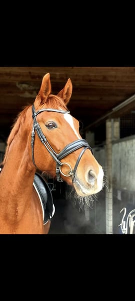 Top Abstammung aus GrandPrix internationalem Dressurstamm. SLP hervorragend abgelegt. Landeschampionatsteilnehmerin. Seit 2 Jahren auf Weide in Herdenhaltung mit Vollpension Nach längeren Trainingsphasen immer mal wieder taktunrein. Daher nur als Zuchtstute oder Beistellpferd in gute Hände abzugeben.