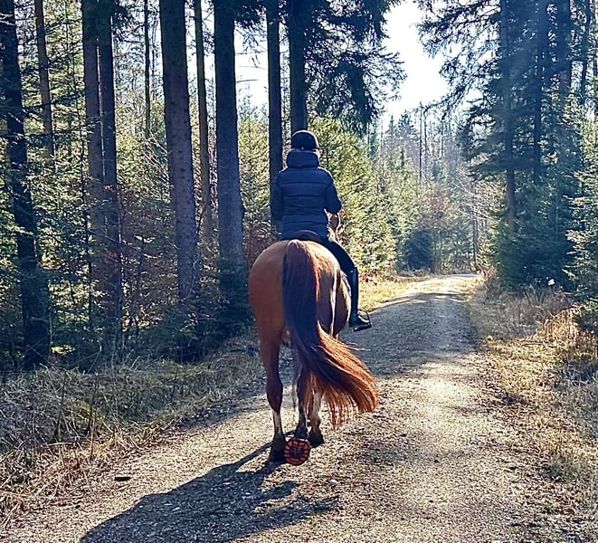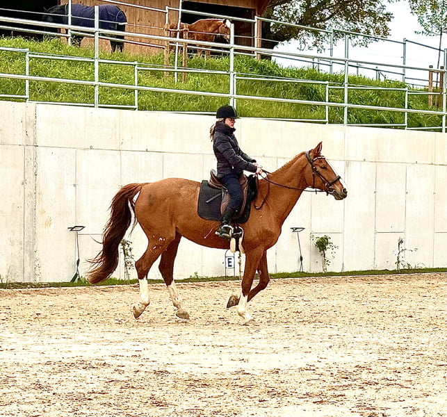 Für unsere liebevolle, stabile Warmblutstute Livinia (Livi) suchen wir ein neues, liebevolles Zuhause. Livi ist eine 18-jährige Fuchsstute mit 1,74 m Stockmaß. Sie ist ein absolutes Verlasspferd, das sowohl im Gelände als auch in der Halle eine echte Freude ist. Sie ist sofort reitbar, brav, ausgeglichen und hört hervorragend auf ihre Reiter*innen. Charakter & Umgang Livi ist eines dieser Pferde, die immer gefallen möchten. Sie ist freundlich, zugewandt, unkompliziert im Umgang und zeigt sich stets höflich und zuverlässig — egal ob beim Putzen, Satteln, Hufe geben oder Reiten. Ausbildung & Einsatzbereich Livi ist sehr gut ausgebildet: - solide Dressurarbeit (Seitengänge macht sie zuverlässig, saubere Übergänge, Leicht abrufbarer Galopp, taktreine Gänge) - sicher beim Springen bis ca. 1 m - absolut brav und zuverlässig im Gelände Damit ist sie ideal für: - Freizeitreiter*innen mit Anspruch - Wiedereinsteiger - Reiter*innen, die ein wirklich verlässliches Pferd suchen - Menschen, die ein Pferd möchten, das ihnen Sicherheit gibt Gesundheit & Haltung Livi ist gesundheitlich in einem sehr guten Zustand, regelmäßig geimpft und entwurmt. Sie wird kontinuierlich geritten und gepflegt – völlig einsatzbereit. Was wir suchen Für Livi wünschen wir uns ein wertschätzendes Zuhause. Uns ist ein guter Platz wesentlich wichtiger als der Preis. Besichtigung Kennenlernen und Probereiten sind nach Absprache jederzeit möglich. Preisvorstellung: 5.000 € VB – ein gutes Zuhause ist uns wichtiger als der Preis. Livi wird nur in beste Hände abgegeben.