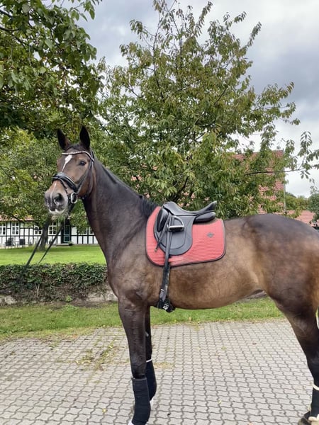 This 8-year-old tall and elegant mare by Bon Coeur x Iberio impresses not only with her exceptional rideability and quality but also with her strong nerves and balance. In daily work, she is extremely pleasant and easy to ride despite her size. She is always motivated, clear-headed, and absolutely uncomplicated in daily handling – whether grooming, saddling, or loading. In sports, she has won up to M-level dressage and is on the direct path to S-level. She already masters the first S-level exercises confidently. At competitions, she always presents herself as focused, willing to perform, and strong-minded. Suitable for ambitious amateurs or professionals looking for a modern and performance-oriented sport horse with three above-average basic gaits that still has a lot of potential for higher tasks.
