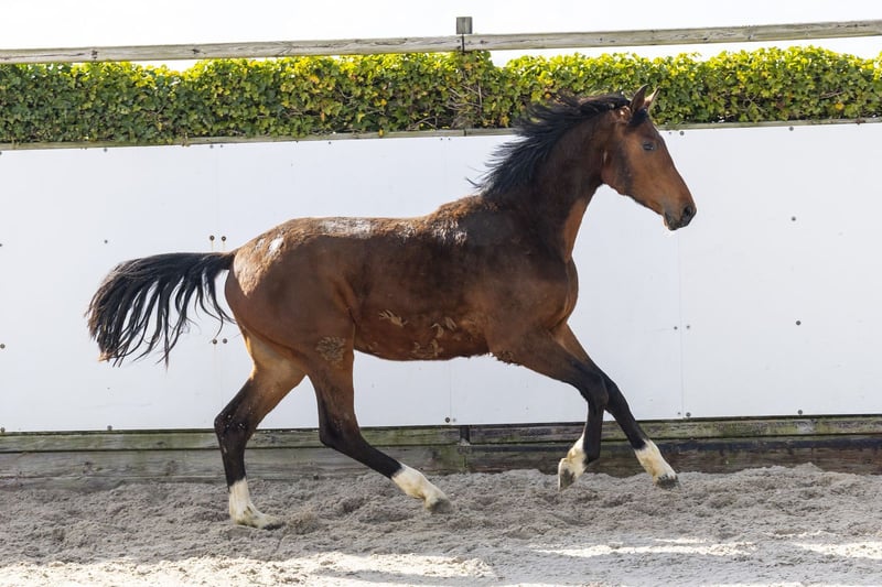 Mooi type tweejarige met een aansprekend model en veel uitstraling. Beschikt over een zeer goede galop met veel balans en beweegt lichtvoetig. Laat een makkelijke sprong zien met veel afdruk en natuurlijk vermogen. Een compleet paard met kwaliteit en veel toekomstperspectief. Vader Kassander van ’t Roosakker – 1.40m Zoon van Echo van ’t Spieveld (1.60m) uit de sterke Roosakker-stam. Bekend om het brengen van vermogen, instelling en moderne sporttypes. Moeder Quinetta VLS (v. Cornet Obolensky 1.60m) Geen sportresultaten Moederlijn / stam Grootmoeder C-Canancra HC Z (v. Canabis Z 1.60m) – 1.40m Uit de moederlijn: – Erasmus vd Heffinck – 1.60m – C-Canancra HC Z – 1.40m – Anka van ’t Lozershof – 1.40m – Diarado d’Ancka – 1.30m Verder in de stam: – Rabanna van Costersveld – 1.35m – Tequila van ’t Spieveld – 1.30m Goedgekeurde hengsten in de lijn: – Kassander van ’t Roosakker – Echo van ’t Spieveld – Heartbreaker – Carthago – Cornet Obolensky – Clinton – Canabis Z – Kashmir van Schuttershof Zeer sterke internationale prestatiestam met meerdere 1.40m–1.60m paarden en bewezen Grand Prix genen.