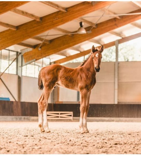 Emerytt du VS z is an Emerald van't Ruytershof x Bamako de Muze x Regilio The stallion has been handled since day one and is well-behaved. He stands still for the farrier, easily loads the trailer, and his vaccinations have always been kept up to date. Emerytt has always been kept in a group and is familiar with other horses. The dam, Belvu van Waerbeek z, daughter of Wikske II van Wittenberg (1.45m), is the half-sister of Trixie z (1.60m), Too Wicked SDW z (1.55m), and No Wicked Grin SDW z (1.35m). This promising stallion comes from the mare line of Stal Ceulenmans (Stal de Dwerse Hagen) and from the same mare line as the 1.65m stallion Cento Lano. Emerytt has jumped twice in freedom and is already showing his talents. Interested or want more information? Call or send a message to: +32 473 25 93 26