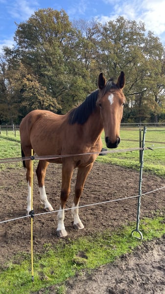 Emerytt du VS is een Emerald van't Ruytershof x Bamako de Muze x Regilio Hengst is vanaf dag 1 in de hand geweest en is braaf in de omgang. Staat stil voor de hoefsmid en gaat gemakkelijk de trailer op, vaccinaties zijn ook altijd bijgehouden. Emerytt heeft altijd in groep gestaan en kent andere paarden. De moeder, Belvu van Waerbeek z, Dochter van Wikske II van Wittenberg (1.45m) is de halfzus van Trixie z (1.60m), Too Wicked SDW z (1.55m) en No Wicked Grin SDW z (1.35m) Deze veelbelovende hengst komt uit de merrielijn van stal Ceulenmans (stal de Dwerse Hagen) en uit dezelfde merrielijn als de 1.65m hengst Cento Lano. Emerytt heeft twee keer in vrijheid gesprongen en laat al zeker zijn talenten zien. Interesse of meer info gewenst? Bel of stuur een berichtje naar: +32 473 25 93 26
