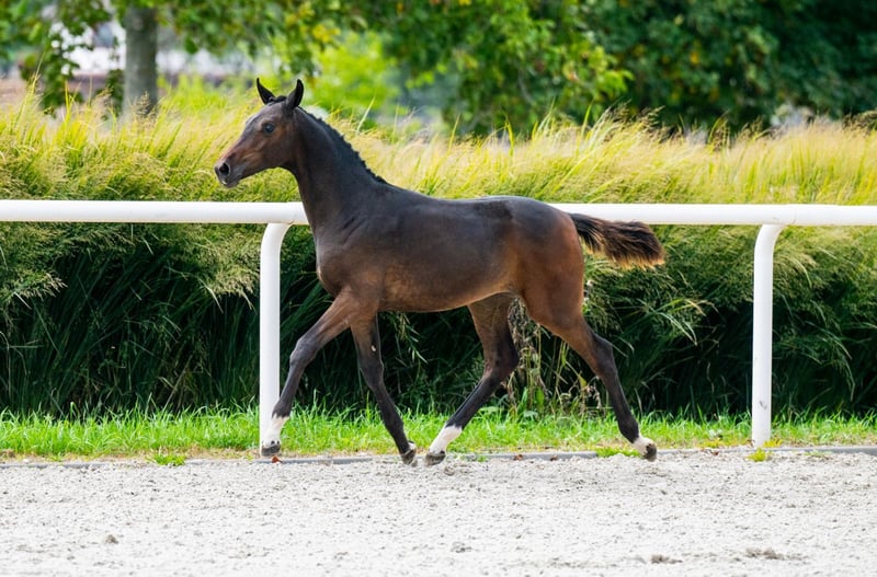 Harwick SA Z vereint die Kraft von Tagine SA und den Einfluss eines der erfolgreichsten Springvererber, Heartbreaker. Dieser Hengstfohlen zeigt frühzeitig Eigenschaften wie Selbstbewusstsein, Intelligenz und schnelle, ausgewogene Bewegungen. Der Vater, Heartbreaker (1,60 m), ist ein Grundpfeiler der modernen Springpferdezucht. Als Wettkämpfer erzielte Heartbreaker große Erfolge, belegte den 4. Platz im Grand Prix von Aachen und den 4. Platz im Grand Prix von London, dank seiner schnellen Reflexe und seines enormen Vermögens. Sein sorgfältiger und effektiver Sprungsstil, gepaart mit einer starken Kampfbereitschaft um den Sieg, machte ihn in jedem Wettbewerb zu einem herausragenden Pferd. Heartbreaker hat diese Eigenschaften an seine Nachkommen weitergegeben und zahlreiche internationale Springpferde hervorgebracht, darunter Romanov (1,60 m), Echo van’t Spieveld (1,60 m) und Verdi (1,60 m). Seine Nachkommen sind bekannt für ihre Reitbarkeit, Schärfe und Sorgfalt – alles Eigenschaften, die sie im Sport und in der Zucht äußerst begehrt machen. Die Mutter, Tagine SA, ist eine Kombination aus Elite-Blutlinien und eine Tochter von Taloubet Z (1,60 m), dem prominenten Springpferd von Christian Ahlmann, und Jenna van’t Meulenhof, einer Vollschwester von Emerald (1,60 m). Die Mutterlinie ist gefüllt mit internationalen Leistungsträgern wie Diamanthina v/h Ruytershof (1,60 m) und Herald van’t Ruytershof (1,60 m), was sicherstellt, dass Harwick Athletik, Sprungkraft und eine natürliche Fähigkeit zum Hochleistungssport erbt. Harwick SA Z zeigt bereits Anzeichen seines Pedigrees: Er ist ein selbstbewusstes und intelligentes Fohlen mit Lernbereitschaft und dem Wunsch zu gefallen. Seine schnellen, kraftvollen Bewegungen und sein starker Körperbau erinnern an Heartbreaker und machen ihn zu einem vielversprechenden Kandidaten für zukünftige Wettbewerbe. Mit den schnellen Reflexen und dem Vermögen von Heartbreaker sowie dem athletischen Talent von Tagine SA ist Harwick gezüchtet, um sowohl im Sport als auch als wertvolle Bereicherung in Zuchtprogrammen erfolgreich zu sein.