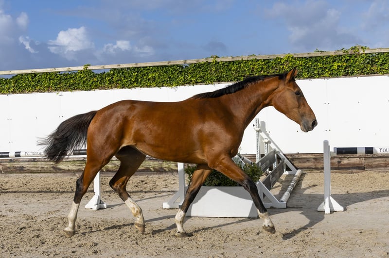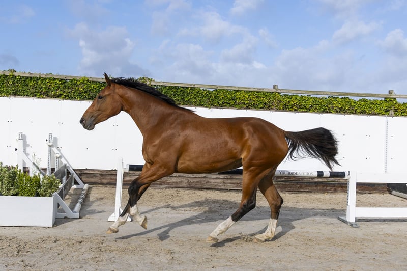 The three-year-old Calamity Jane Van de Sneppe Z is a mare with a beautiful and strong type and a big canter. She has an old scar on her left hind leg. Sire is the well-breeding Comilfo Plus Z, via Comme il Faut a grandson of ‘golden’ Ratina Z. Grandsire Crowntano Z is via his sire Crown Z also a grandson of Ratina Z, who belonged to the best showjumping horses under Piet Raijmakers and Ludger Beerbaum. Dam Kyra van ’t Zorgvliet (Clinton) already gave a 1.30m and a 1.20m level showjumping horse. Granddam Fearless van ’t Zorgvliet (Quidam de Revel x Voltaire x Heartbreaker) jumped at international 1.40m level. Great-granddam Citta van ’t Zorgvliet competed at international 1.45m level and is a half-sister to Bambino van ’t Zorgvliet (1.60m GP) and a 1.50m level horse.