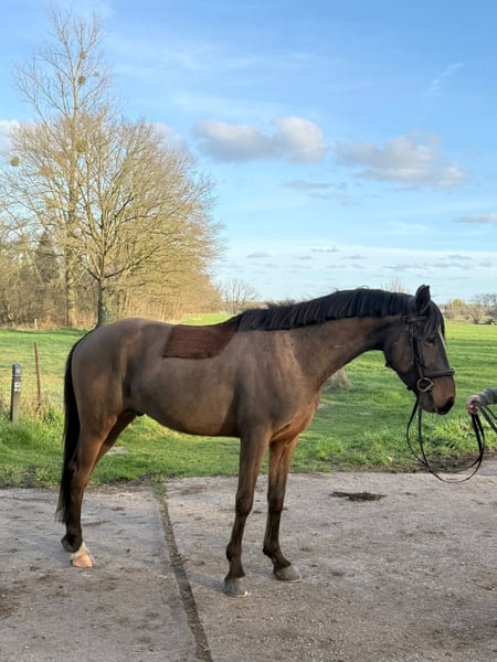 Our homebred pony Donny (Don Bandito Z, turning 4 years old at the end of May) is a very pleasant and honest pony with a good mindset and an interesting pedigree (D’Aganix x Voltaire). He stands out not only for his jumping ability, but especially for his easy and reliable character in daily handling. Under saddle he is well-behaved, light to ride and gives a safe and confident feeling. Of course, he is still a young pony and not a finished or completely bombproof horse. He will need further age-appropriate training. well-behaved in handling No stallion behaviour Stands in the field calmly next to mares Good to hack out, also alone Used to large machines and tractors Can be ridden bareback without any issues Jumps with scope and good overview A pony that is suitable both for leisure riding and for someone who wants to progress further in the sport. Currently there is a minor correction needed in the front right hoof position. This is regularly maintained by the farrier. Castration is possible if desired. Suitable for riders who are looking for an honest pony with potential and who enjoy further training and development. Sharply priced due to a minor hoof correction on the front right. Otherwise completely healthy, uncomplicated and with no medical history. All examinations are allowed at the buyer’s expense. A good and suitable home is very important to us. A smooth and prompt transaction is preferred. Location: Gangelt For serious inquiries, please get in touch