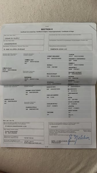 Hongre par Comilfo Plus Z x Kashmir Van Schuttershof 10 ans – 167 cm César est un hongre au beau modèle et un vrai potentiel à exploiter. Débourré à 4 ans, il a ensuite principalement vécu au pré chez son éleveur, qui souhaitait le garder pour ses enfants… projet qui n’a finalement jamais abouti. Il est donc resté relativement vert dans le travail et reste à finaliser dans sa formation. Dynamique tout en restant brave, il montre de très bonnes dispositions et une réelle envie de bien faire. C’est un cheval proche de l’homme, qui apprécie qu’on s’occupe de lui et qui est agréable au quotidien. Il part en balade sans souci, seul comme accompagné. Il enchaîne actuellement un parcours à 90/100 cm, est déjà sorti en entraînement extérieur et a sauté davantage à la maison sur des barres isolées. Au vu de son sang et de sa super tête, il pourrait également très bien convenir pour du cross. ✔️ Pratique aux soins ✔️ Va au pré seul ou avec d’autres sans souci ✔️ Gentil et coopératif ✔️ Bon mental, ne regarde rien Il présente un potentiel 125/130 cm Idéal pour quelqu’un qui souhaite le valoriser, ou pour un cavalier voulant un chouette joli cheval polyvalent avec de la qualité. 📍 Visible en Belgique - région Liège (Sprimont) 📅 Sur rendez-vous uniquement 📞 CONTACT UNIQUEMENT au 0032 485 13 50 45 WhatsApp OK
