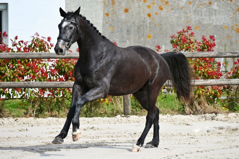 Greynight de Ponflot Z ist ein Zangersheide-Wallach aus dem Jahr 2023, derzeit etwa 1,63 m groß, mit einem modernen, harmonischen und gut proportionierten Körperbau. Er stammt vom sehr gefragten Glamourdale ab, verbunden mit bewährten Linien (Wolkenstein x Gribaldi). Sein Pedigree ist anerkannt für seine Qualität in den Bewegungen, sein Gleichgewicht und seine Lernfähigkeit, was ihn besonders für den Dressursport geeignet macht. Mit einem willensstarken und ausgeglichenen Gemüt zeigt Greynight eine ernsthafte Arbeitsweise, bleibt dabei aber zugänglich. Nach der Vor-Ausbildung wurde er vorsichtig im Offenstall gehalten und anschließend wieder eingeritten. Er wurde sorgsam im Umgang geprägt und verfügt heute über solide Grundlagen: Longieren, Longenarbeit und Schritt mit dem Reiter. Sein ruhiges Verhalten und seine Bereitschaft ermöglichen eine gute Wiedereingliederung in den Trainingsalltag, insbesondere für einen ambitionierten Amateur unter Anleitung. Da er noch jung und im Aufbau ist, zeigt er eine natürliche, ausgeglichene Bewegungsführung und eine gute Grundhaltung, was auf ein vielversprechendes Potenzial für eine Weiterentwicklung im Dressur- oder Vielseitigkeitssport hindeutet. Greynight stellt eine attraktive Gelegenheit für einen Reiter dar, der ein junges Pferd nach seinen Vorstellungen aufbauen möchte, mit einer soliden Basis und Entwicklungspotenzial. Temperament & Alltag Sehr angenehm im Umgang, besticht er durch seine Einfachheit: Pflegeleicht Aktuell im Offenstall, kennt den Stall Einfache Handhabung und zuverlässiges Verhalten Ein praktisches, ausgeglichenes Jungpferd, ideal für eine ruhige Weiterentwicklung. Für welches Projekt? Greynight eignet sich besonders für: Einen engagierten Amateur, der ein qualitativ hochwertiges Jungpferd aufbauen möchte Einen Reiter, der ein gut gezogenes, zugängliches Pferd sucht Ein Freizeit- und Entwicklungsprojekt mit Schwerpunkt auf Dressur Einen Reiter, der in ein junges Pferd mit Potenzial investieren möchte Seine Stärken Gefragtes Dressurpedigree (Glamourdale x Wolkenstein x Gribaldi) Modernes, harmonisches Modell Gutes, willensstarkes und ausgeglichenes Wesen Bereits erworbene Grundarbeit (Longieren, Longen, Schritt mit dem Reiter) Vollständige Röntgenbilder verfügbar, mit Befund (Gliedmaßen, Rücken, Hals – März 2026) Einfach im Umgang und in der Handhabung Attraktiver Preis, der der tierärztlichen Untersuchung entspricht Pferdedaten Gesundheit & Pflege Impfungen, Wurmkuren, Hufpflege aktuell Tierärztliche Informationen: Vollständige Röntgenbilder mit Befund (Gliedmaßen, Rücken, Hals – März 2026) Charakter & Fähigkeiten Disziplin(en): Dressur / Freizeit
