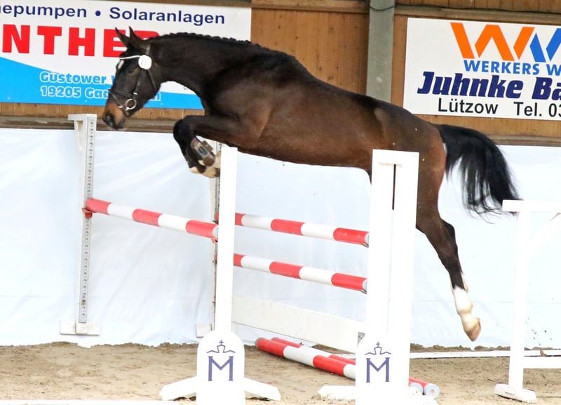 Zum Verkauf steht ein 3 jähriger Wallach, der zur Zeit ca 1,66m groß ist. Da er etwas zarter gebaut ist, glauben wir nicht, dass er für uns groß genug wird (1,75 aufwärts). Er ist sehr Schmiede und verladefromm und wurde bereits leicht anlongiert. Abstammend ist er vom Thio van t und l (Toulon x Calato) x Kannan x Balou x Silvio. Aus seinem Stamm sind bereits mehrere international erfolgreiche Pferde bis 1,60m. Freispringen sieht ordentlich aus, Videos können verschickt werden. Sein Gemüt ist ausgeglichen und er ist sehr verträglich mit anderen Pferden. Bei Interesse kann das Pferd gegen Aufpreis bei uns auch angeritten werden. Standort: 23936 Kirch Mummendorf