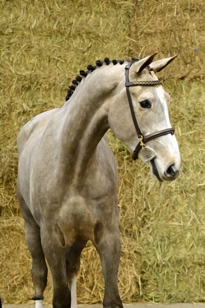 This three-year-old grey gelding is sired by the legendary Diamant de Semilly. On the dam’s side we find influential stallions such as Casall, Mr. Blue, and Almé Z. The third dam produced no fewer than three 1m60 horses: Luxgood (Lux Z), Patrick (Calvados), and Santana B (Mr. Blue). Delvaux de Jolie Z is a mature, well-developed young horse with a correct and athletic model. He moves with excellent balance and shows an easy, natural canter. During the free jumping he impressed with his cooperative attitude and surprised us with his exceptional scope. The higher and more challenging the jumps became, the better Delvaux performed. Conclusion: this is a horse with the potential to go far in the sport and one that will suit a wide range of riders. In the case of direct export to non-EU countries, VAT is no longer applicable (21% becomes 0%). If the export is delayed (but happens as soon as possible), the VAT will be refunded after we have received the official export document (which is drawn up by customs).