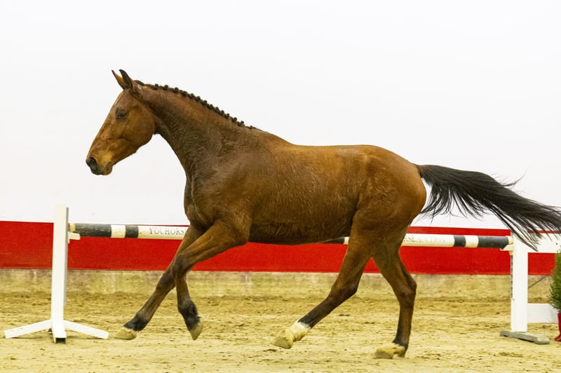Ein Pedigree, das einem das Wasser im Mund zusammenlaufen lässt. Hermes H5 Z mag nicht besonders groß sein, doch er springt wie ein Großpferd. Er kommt direkt aus dem Aufzuchtstall, ist noch grün im Umgang und noch nicht viel gewöhnt, aber was er beim Springen zeigt, ist beeindruckend. Er springt sehr leicht aus dem Boden, ist leichtfüßig, athletisch und zeigt viel natürliche Elastizität. Sein Springstil ist kraftvoll und natürlich, mit einer scharfen Hinterhandtechnik und viel Leichtigkeit. Dieser Hengst ist ein wahrer Rohdiamant: Alle Qualitäten sind vorhanden, es braucht nur Zeit und Feinschliff. Vater Heartbreaker hat selbst bis auf 1,60 m Grand Prix-Niveau turniert und gilt als einer der einflussreichsten Zuchthengste im modernen Springsport. Er hat zahlreiche internationale Spitzenpferde hervorgebracht, darunter Halifax van het Kluizebos (1,70 m), Quintero und Toulon, und ist bekannt für seine Vererbung von Reflexen, Schärfe und Elastizität. Mutter Hiamant van ’t Roosakker ist von Diamant de Semilly, einem weiteren 1,60 m Grand Prix-Hengst und Grundpfeiler der internationalen Zucht. Die Mutterlinie gehört zur absoluten Weltelite. Diese Familie hat unter anderem VDL Groep Elegant Hero Z (1,60 m), H5 Ganesh Hero Z (1,60 m), Electra van ’t Roosakker (1,60 m), Falco van ’t Roosakker (1,60 m), Kaprice van ’t Roosakker (1,60 m) sowie Erco van ’t Roosakker, einen zugelassenen Hengst und Sieger auf 1,60 m, hervorgebracht, neben einer langen Liste von Pferden auf 1,45–1,55 m Niveau und zugelassenen Hengsten. Bei Stal Everse hatten wir das Privileg, ein Pferd aus genau dieser Familie zu besitzen, das als Fünfjähriger bei den Weltmeisterschaften für junge Pferde in Lanaken Weltmeister wurde, geritten von Doron Kuipers. Dies unterstreicht die außergewöhnliche Qualität und Zuverlässigkeit dieser Familie. Hermes H5 Z ist äußerst gut gezogen, springt mit außergewöhnlicher Elastizität und Qualität und besitzt alle Voraussetzungen, um sich zu einem ernsthaften Sportpferd für die Zukunft zu entwickeln.
