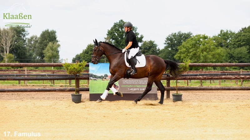 Father Flint is the son of the Hanoverian and Bundeschampion as well as World Championship bronze medal winner Fürsten-Look, who is now successfully competing at the advanced level. Grandfather Fürstenball was also a Bundeschampion and Stallion of the Year in Denmark, later achieving victories up to Inter I. The maternal grandfather Neos van't Vossenhof is sired by none other than the KWPN top sire Numero Uno, who himself was successful in international show jumping under Marco Kutscher. However, even more impressive than his own performance is the breeding success of Numero Uno. An astonishing 683 of his offspring have been successful over 1.40m and higher, with 83 of his descendants competing successfully at 1.60m. The pedigree is rounded off by the Holsteiner stallion Corleone by Caletto II and the valuable maternal line of the Merrielijn 213. He is an incredibly sweet guy who, with further training, will develop into a great leisure companion, school horse, or therapy horse. He will be offered at our farm auction on August 30, 2025, at: mennraths.de Farm Auction Klaaßen https://www.mennraths.de/auction/96/catalog