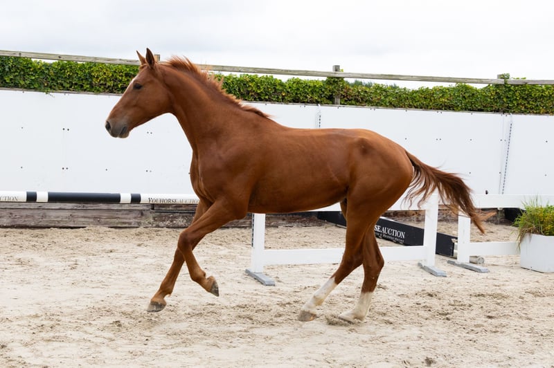 The four-year-old Nash-Faire K Z stands out for his scope over fences. He is cautious, has a manageable temperament, and jumps with good manners. He is also suitable as a hunter or equitation horse. Two half-brothers compete at 1.30m level. His sire, Nashua Z (1.20m show jumping), is an AES-approved stallion by Nabab de Reve out of the 1.60m Grand Prix mare Cruisly, a half-sister to the approved stallions President (1.40m jumping) and Ulysses M2S (1.60m Grand Prix). His dam, Affaire K (Tygo), jumped courses up to 1.30m and is a half-sister to a 1.30m show jumper. His granddam, Urloffine II (Lux Z), competed in 1.35m classes. From the same dam line comes the 1.50m show jumping mare Vantiels Esprit, dam of the KWPN stallion Carrera VDL (1.60m GP) and half-sister to the renowned Tinka’s Boy (1.60m Grand Prix). This horse comes from the stables of one of the Netherlands’ top breeders, who was even honored as KWPN Breeder of the Year. The horses from this breeding program have grown up in a calm and spacious environment, grazing in groups on pastures, allowing them to develop naturally. They have never been trained – they are only halter-trained – and come directly from the breeder. This makes them particularly interesting for those who wish to train a young horse according to their own methods. They are honest, unspoiled, and purely bred, straight from the hands of a reputable breeder.