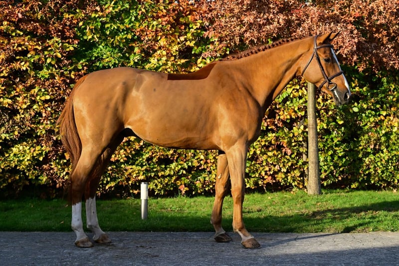 This striking five-year-old chestnut gelding by Don VHP Z is truly a horse that stands out. He has a correct, modern conformation paired with an elegant appearance that immediately catches the eye. On the dam’s side, his pedigree shows strong jumping bloodlines, featuring Humberto ASK, Numero Uno, Voltaire and Jasper, making him highly interesting for both sport and breeding. In movement, Don Amour demonstrates a great deal of quality: his gaits are spacious, powerful, and very correct. In the canter, his natural elasticity, balance, and suppleness are especially noticeable. He transitions easily and performs clean, effortless changes. Combined with his blood, rideability, and willing character, he is truly a pleasure to work with. He also proves his talent over the jumps. He thinks along with the rider, shows good awareness, and consistently gives a very positive feeling at the fences. His attitude, technique, and eagerness to perform make him a horse with clear potential for the future. For anyone looking to invest in a modern, high-quality sport horse with presence and talent In the case of direct export to non-EU countries, VAT is no longer applicable (21% becomes 0%). If the export is delayed (but happens as soon as possible), the VAT will be refunded after we have received the official export document (which is drawn up by customs).